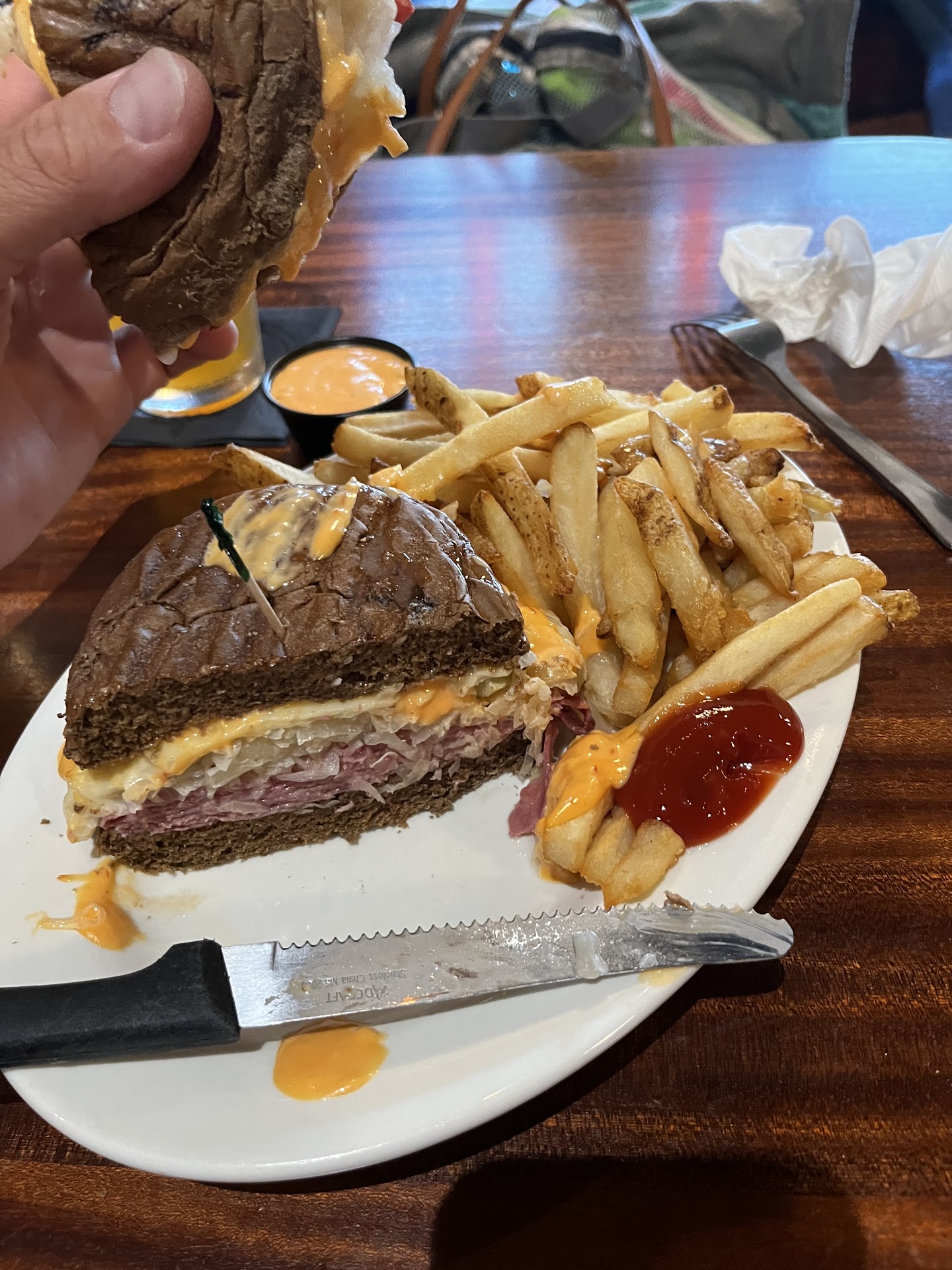 Ā Ā Ā Read moreMy husband and I just returned home from eating dinner at this establishment. What a cozy pub and I love the array of games. There was a dad and young son playing checkers. They also had Backgammon which we love to play but we were eating dinner at the bar. My husband had a cheeseburger and I had their special sandwich of the day which was corned beef on a pumpernickel roll with sweet potato fries and a horseradish/mayo dipping sauce. Both were plentiful and tasty. We started our eating adventure with two tequila cosmos and their appetizer special, garlic and parmesan wings. Excellent! Kayla, our bartender was adorable-with every song playing overhead, she was singing to it. They were playing pop songs from the 90's. Kayla was also efficient and made a great cocktail. I sat next to a regular who was very friendly and told us everything on the menu is great! Michael and I will definitely be back! The prices too are fair and the cocktail was $13 which...