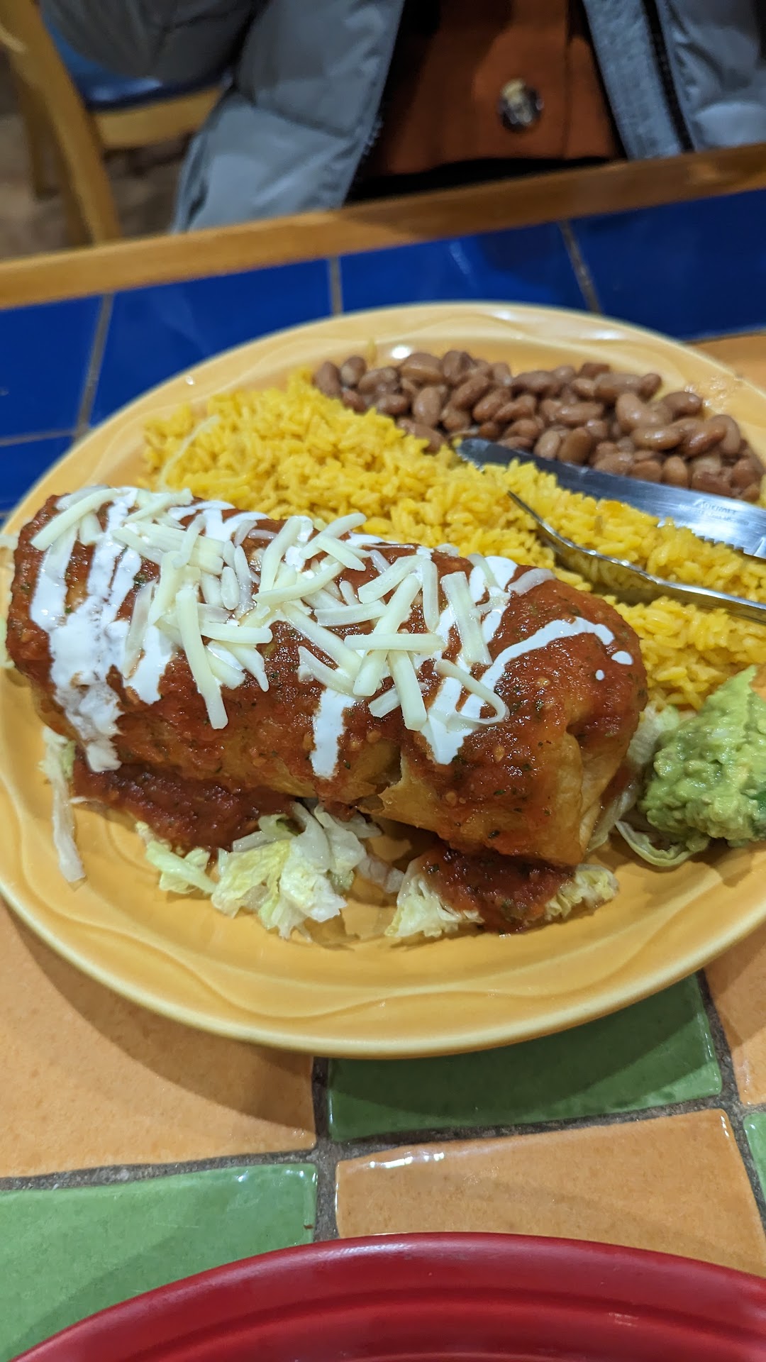 There's just something about a good taco, you feel the harmony of raw ingredients mixed to proportions. I loved my wife's Chimichanga more than mine burrito. Chimichanga felt more like a pizza(I know weird comparison),but hear me out. The fried taco came with lime rice and beans. Inside the fried taco was a generous amount of cheese with sauteed bell pepper and onions. The taste felt like a home made pizza. But hey, maybe it's just me.