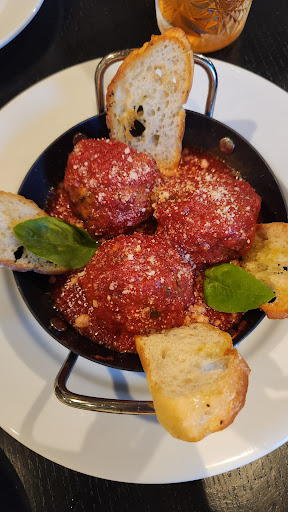 The Mediterranean salad was crisp and bright, the buffalo dip had a kick that lingered, and the three meatballs—insane, topped with fresh ricotta—were so spot-on I found myself scratching my head in disbelief. Then came the shrimp, seared in a delicate but smoking-hot pan, kissed with flavor. But the dish that truly got me? The shrimp crostini. I wanted more bread just to soak up that divine liquid it was bathing in. That sauce deserved a second act.