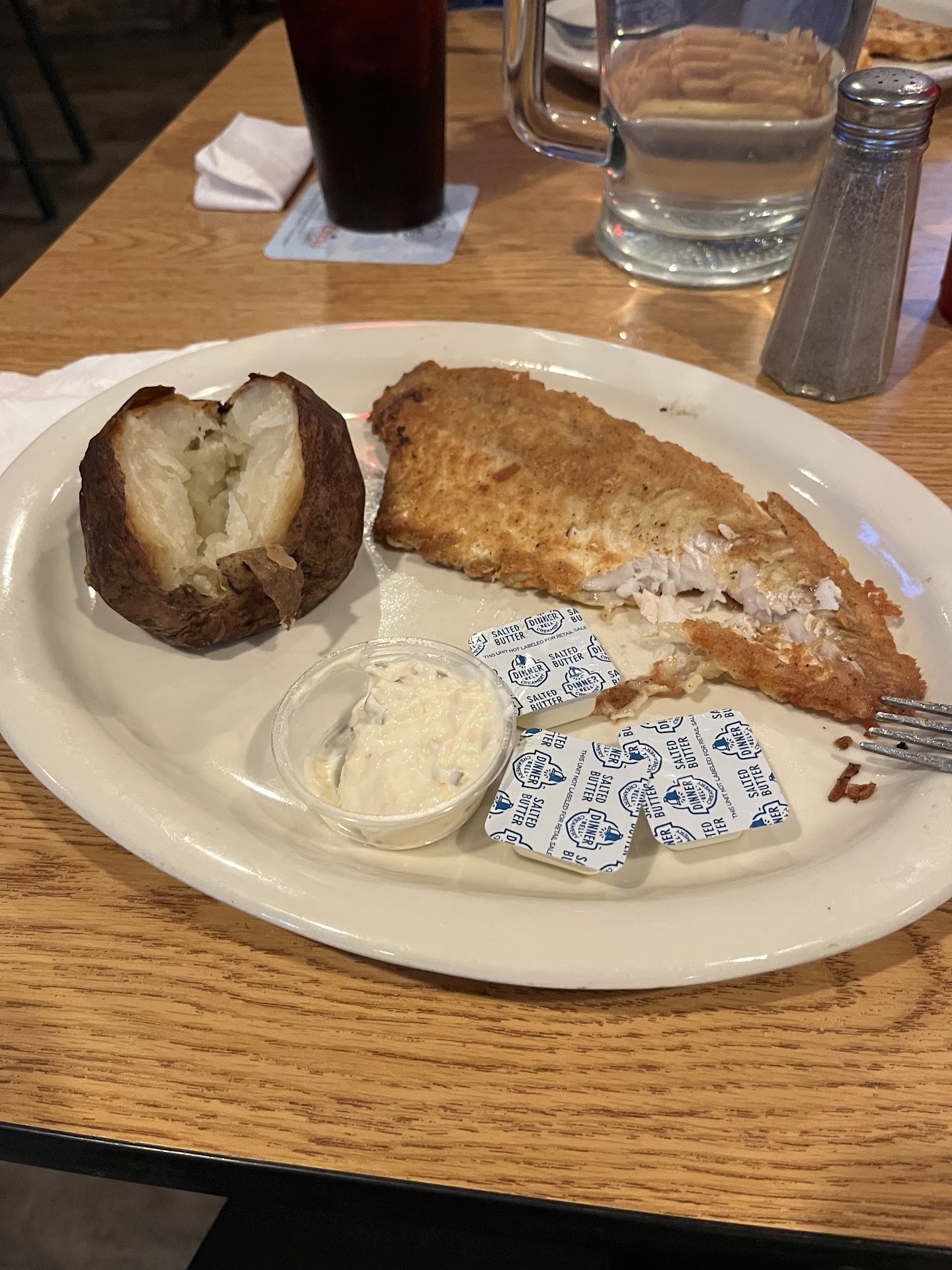 First, we sat down and ordered drinks. I had Two tall Coors light tap beers-(25oz beers) at $5.00 dollars a piece. I viewed that as pretty decent. My Mother had a short (Screwdriver) that was very weak, and on the receipt they charged an extra dollar for the Orange juice. The question here is, are you serious? An extra dollar for orange juice. A Screwdriver is Vodka and orange juice, that's what it is.