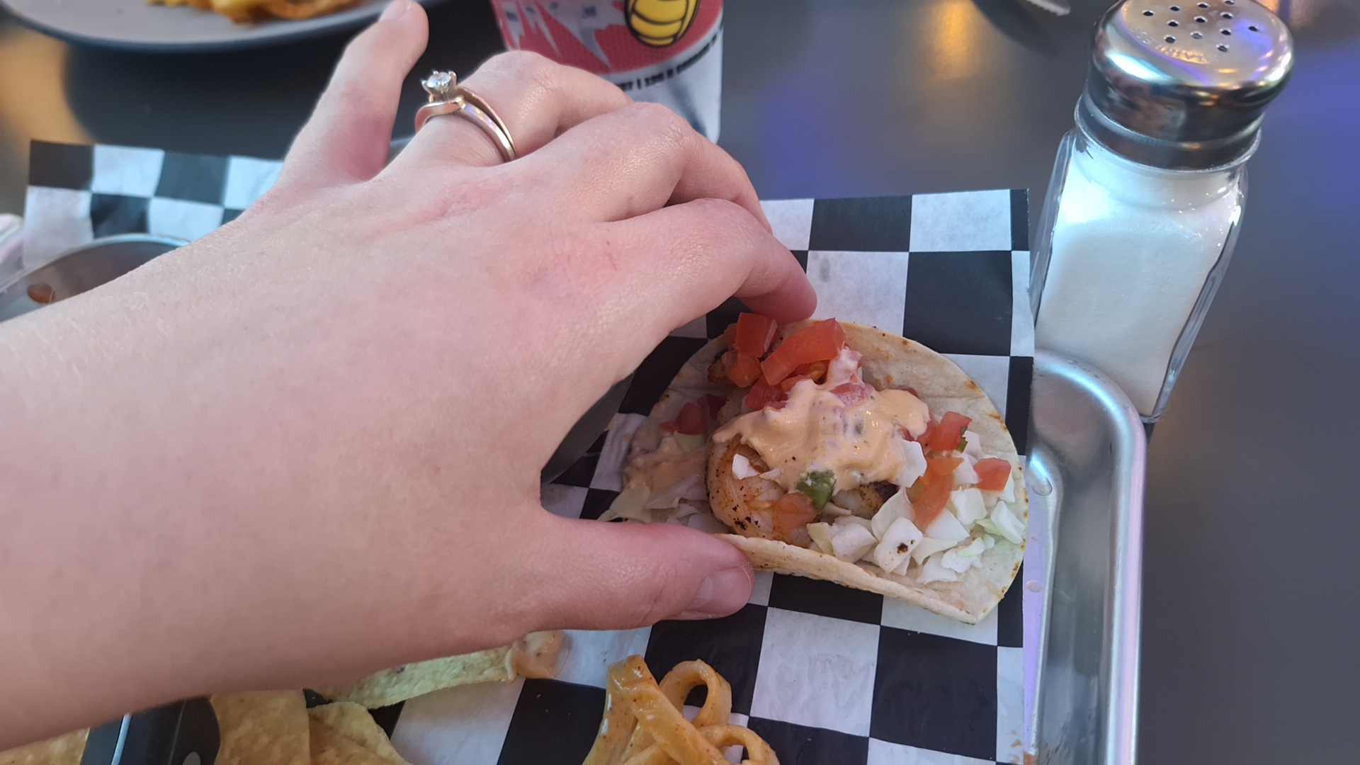 Read moreFirst neutral here. Family of 4 and we all voted! They even let me try everything on the table haha... $105. Family ordered.... The basic cheeseburger and fries (honest 9/10 can't go wrong - fair price and so much meat on a perfect bun), Shrimp Alfredo (4/10 while not even alfredo picky at all lol its huge but wasn't fully cooked and minimal flavor to be honest choosing the Cajun option), Shrimp tacos (7/10 they are very tiny and seriously 1.5- 2 cut up shrimps of meat in each lol Look at my fat hands by the corn tacos 🤣 corn cup was... okay. Alot of lime and not creamy if that matters to you but that SALSA was ON POINT), 16o Prime rib meal (uneaven cook for sure unfortunately, yummy but after ordering medium rare we'd all say it was well done on the skirts and really rare in the center... but we are TX road house brats and never send food back so it is what it is lol - mac and potato sides are well worth a try though!), two pops, 2 waters, no booze or dessert. Service was fast. Place looks great. Staff was friendly. Restrooms clean. Oh and they've got that good good ranch lol I assume they'll work out the kinks overtime and will update if we return with different results. Thanks so much for...