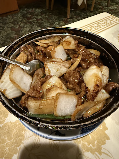 Next, the beef hotpot. It came out in a sizzling bowl. It was a large portion of beef, mushrooms, and vegetables (mostly onion). The flavor was okay. Certainly nothing offensive, and it was good, although a bit oily, but it was lacking an OOMPH. I wish it had more ginger flavor. Or maybe fermented black bean - that would have kicked it up a notch.