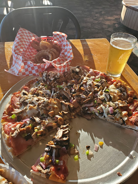 Ā Ā Ā Read moreThis place is great. We have eaten there 3 times now and all 3 times the food was delicious. It's a very busy place even if it don't look that way, but what I found going in to order was alot of people were doing phone in orders and they do make the food in the order they were recieved, and since it's all made to order do not mistake this place for a fast food place. You will need to wait but it is well worth the wait. While waiting we enjoyed an ice cold adult beverage, after all i wasn't driving, so why not. What was a surprise to me was they do more than just pizza, they also have burgers, fries and the best onion rings, not to mention pizza, salad and even ice cream. They have more but they were all out of their to go menus and I cant remember what else they served. The employees were all very friendly and hard working. They were really moving to get the orders out to people fast as they could but not so fast as to take shortcuts with the food. I noticed they knew many of the patrons by name which gives you a good home feel about the place. The bathrooms were well stocked and clean but one of the stalls had a problem with the lock and would not stay shut so I just moved to a different stall. I do recommend this place for the pizza and onion rings, I have not had a chance to try any of the other food yet but as soon as I do I will update...