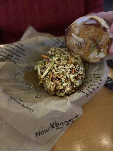 Read moreIs that a brat in your pocket, or are you just happy to be at New Bohemia? They gots brats and beer...lots of craft beers from around the region and the nation, as well as craft brats from, well, around. Like the Alligator brat, Cajun brat, Bat brat (okay, maybe not a Bat brat). I like the Giant Pretzel: feeds 3, or 1 hungry German. Layout is beerhall-style with a fair number of seats at the bar. They have a few TVs for sports fans and the requisite board games for young and old alike. Service is generally okay and this particular New Bohemia has ample parking in the strip mall lot. Prices for beer and food are about what you'd expect at the ballpark--$$âwith beers averaging $7 and brats around $10. I doubt this is the place for vegetarians, vegans or those with gluten sensitivities, but none of those is my primary focus when I go there. Kids allowed, but not pup-friendly. And...