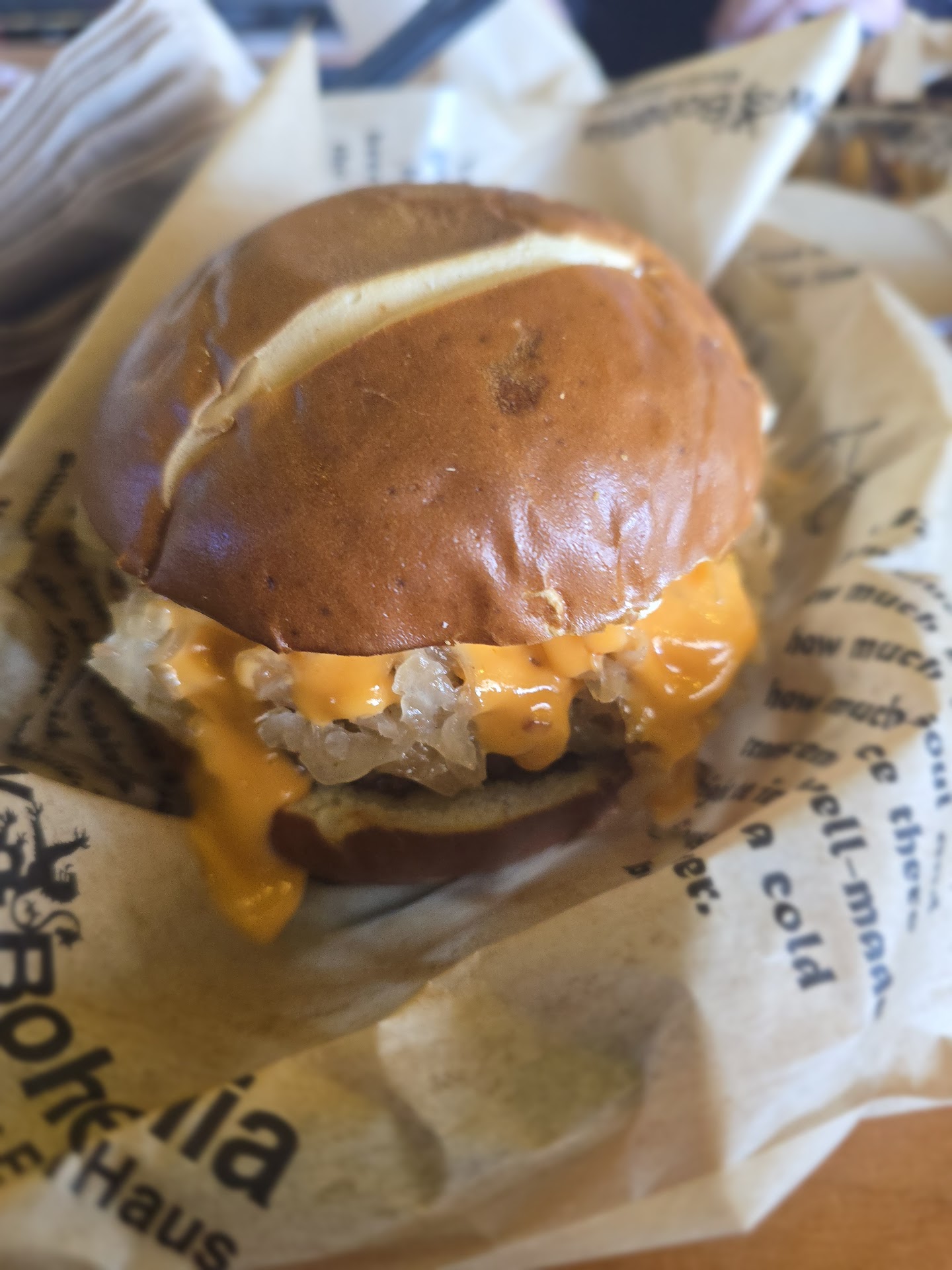Read moreIs that a brat in your pocket, or are you just happy to be at New Bohemia? They gots brats and beer...lots of craft beers from around the region and the nation, as well as craft brats from, well, around. Like the Alligator brat, Cajun brat, Bat brat (okay, maybe not a Bat brat). I like the Giant Pretzel: feeds 3, or 1 hungry German. Layout is beerhall-style with a fair number of seats at the bar. They have a few TVs for sports fans and the requisite board games for young and old alike. Service is generally okay and this particular New Bohemia has ample parking in the strip mall lot. Prices for beer and food are about what you'd expect at the ballpark--$$—with beers averaging $7 and brats around $10. I doubt this is the place for vegetarians, vegans or those with gluten sensitivities, but none of those is my primary focus when I go there. Kids allowed, but not pup-friendly. And...