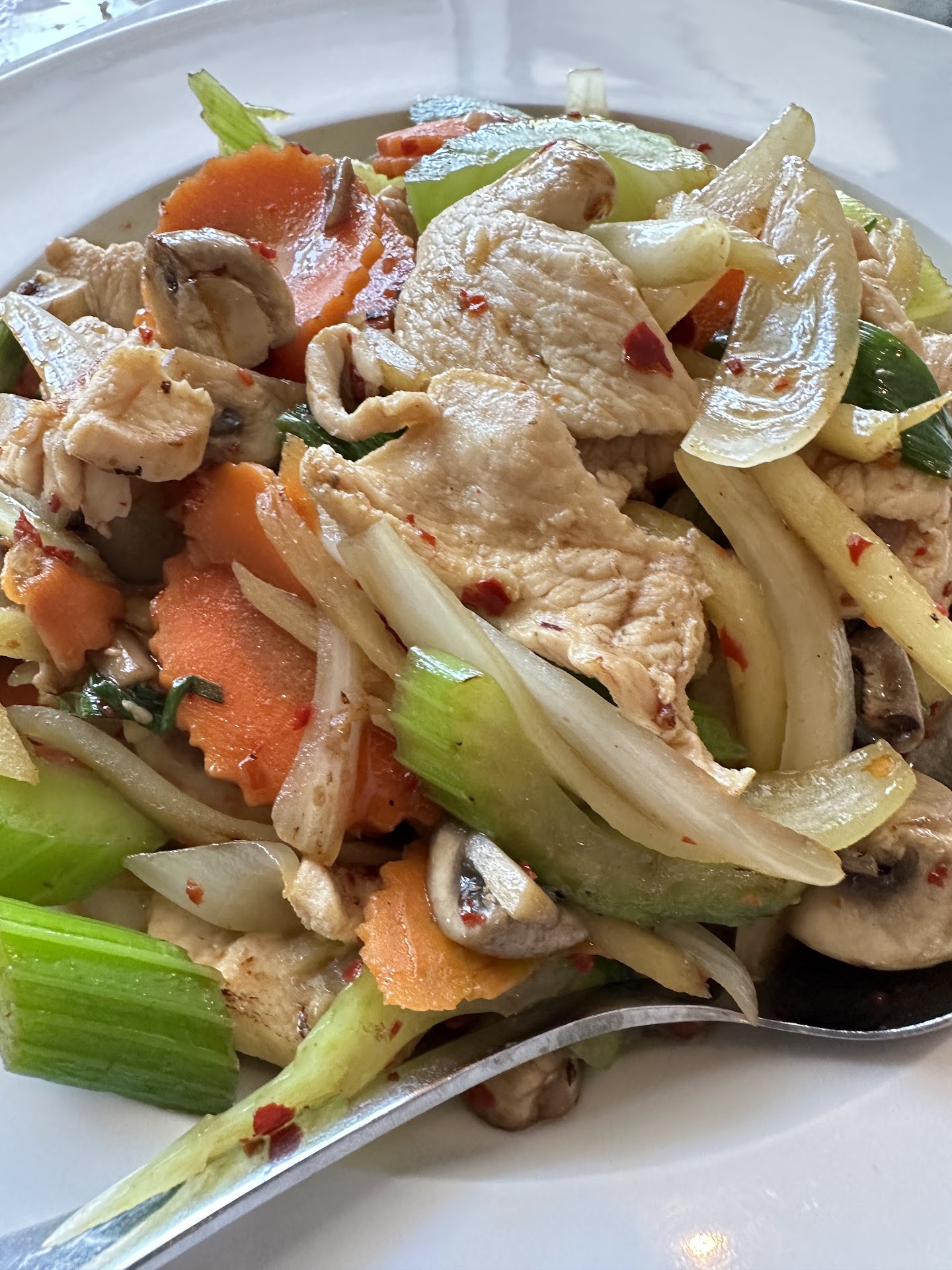 There were a few other groups of diners but it was otherwise pretty quiet. Our server and the other staff were very attentive and provided exceptional service. As a vegetarian, I was very grateful that their menu clearly stated which entrees contained fish sauce and if the item could be prepared as vegetarian. They had an extensive menu and most of the menu was vegetarian or vegan friendly. The restaurant was very clean and orderly.