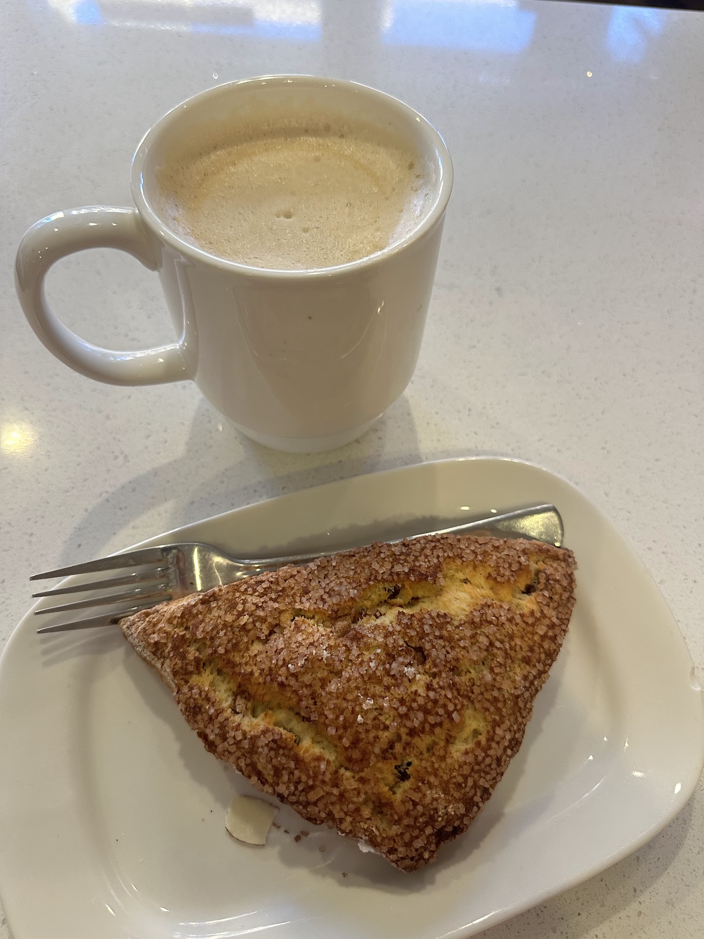 The younger guy took my order and made our drinks. He was much, much kinder. Even though our drinks had no foam, substandard espresso flavor, the milk was curdled hot, and my boyfriend cappuccino was simply just a...
