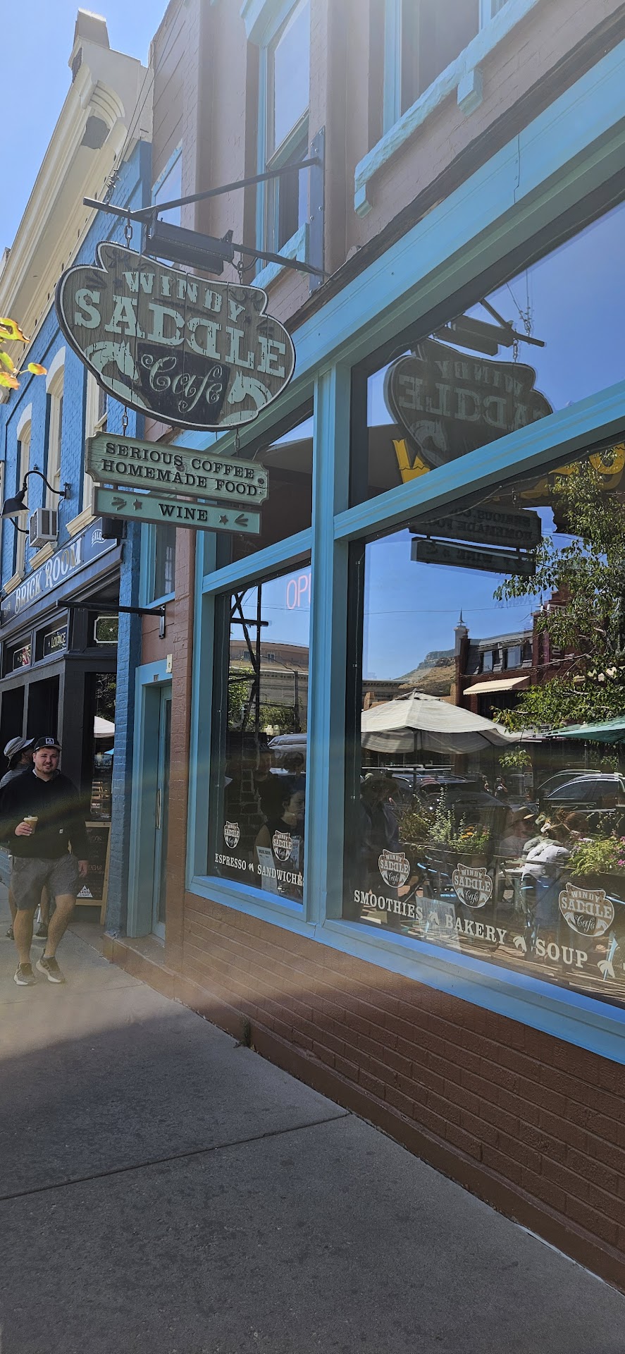*This review is based on two visits over the course of one week. Windy Saddle is a locally owned coffee shop in the heart of Golden, Colorado that is a mix of rustic western and retro chic design. Inside you will find a large, open space with old, exposed brick, dark stained wooden beams, and corrugated metal accents on the front of the bar and counter. The large plate glass windows let in lots of morning sunlight, which made the space feel even more warm and inviting. There was a good variety of music playing over the sound system with the buzz of coffee beans being ground, espressos steaming and the occasional name being called out amidst the clinking and tinkling of dishes and utensils, and the low murmur of patrons chatting. A great spot to breakfast, lunch, read, write, draw or whatever. On one wall there is a shelf of books, which patrons are free to read. Next to that is a shelf of Windy Saddle branded merchandise, which you are welcome to purchase. There is plenty of indoor seating with two-top and four-top tables, as well as bar seating toward the back of the coffee shop. Outside there is even more seating on the sidewalk and in the former parking spaces out front. Food: Their coffee is roasted by OZO Coffee Roasters in Boulder, Colorado. I ordered a dark roast drip coffee and it was excellent. Very good with or without cream. They have a small menu of hot food items as well as a good selection of pastries. I ordered a croissant. Not bad, but I have had better. It’s hard for me not to compare. I asked for it to be warmed up, and it arrived slightly over toasted. And they sliced it in half before they toasted it, so it was very dry and crispy all the way thru. A croissant should be slightly crusty and flaky on the outside and a little soft on the inside. Additionally, my croissant was served with a fork, which I found amusing. I did not eat my croissant with the fork; however, maybe next time I’ll give it a try. On my second visit to Windy Saddle, I ordered the Meat Burrito. It was huge and delicious and was served with a green chile sauce. Highly recommend. If you’re not a big eater, this one could be shared with one other person. Service: I was initially greeted with a non-friendly, but not unfriendly attitude. Not mean or unkind, just indifferent and detached. That being said, I did witness the staff being very friendly and warm with regulars. And as I was in there for quite some time, I did have more warm and friendly interactions with the staff before I left. So I’ll chalk that up to it being a busy morning and not everyone was adequately caffeinated when I arrived. The kitchen staff and baristas were as busy as bees behind the counter. It took about ten minutes before my drip coffee was ready. There were several folks who ordered coffee after I did whose orders came out long before mine did. And my croissant came out well before my coffee. Maybe they had to brew a pot of coffee? Maybe they forgot my drink order? I don’t know. But after ten minutes I did ask someone about my coffee. It was brought out immediately after that.
