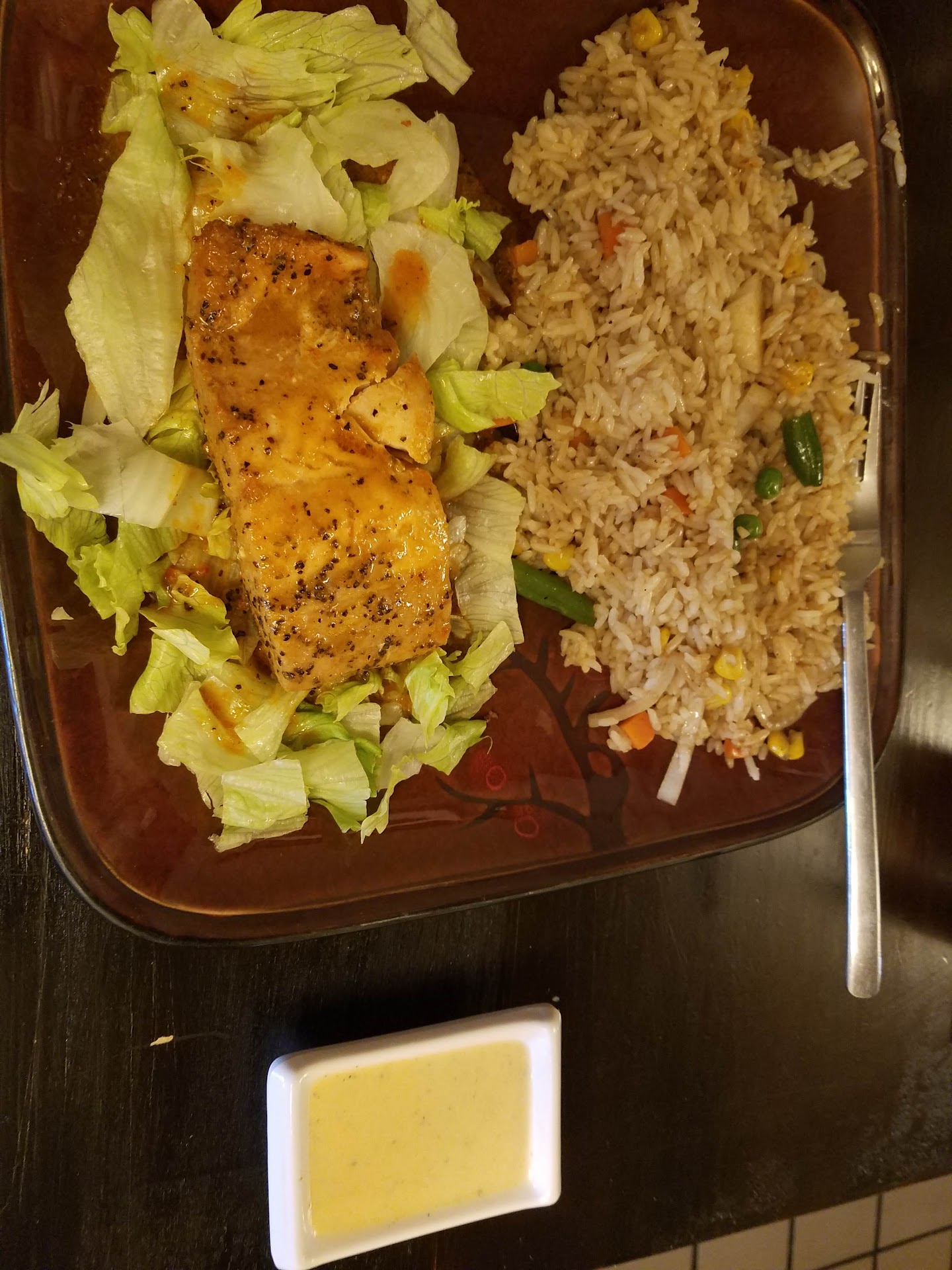 We ordered carryout, and didn't check the food before leaving the restaurant. The food was so old and tasted disgusting, I’m surprised they weren’t embarrassed to serve it. The chicken tasted like it was refried multiple times, was rock-hard, and not fresh. The rice was also stale and was microwaved before being packed. I don't even care that they forgot my drink or that the food is overpriced. The "food"...