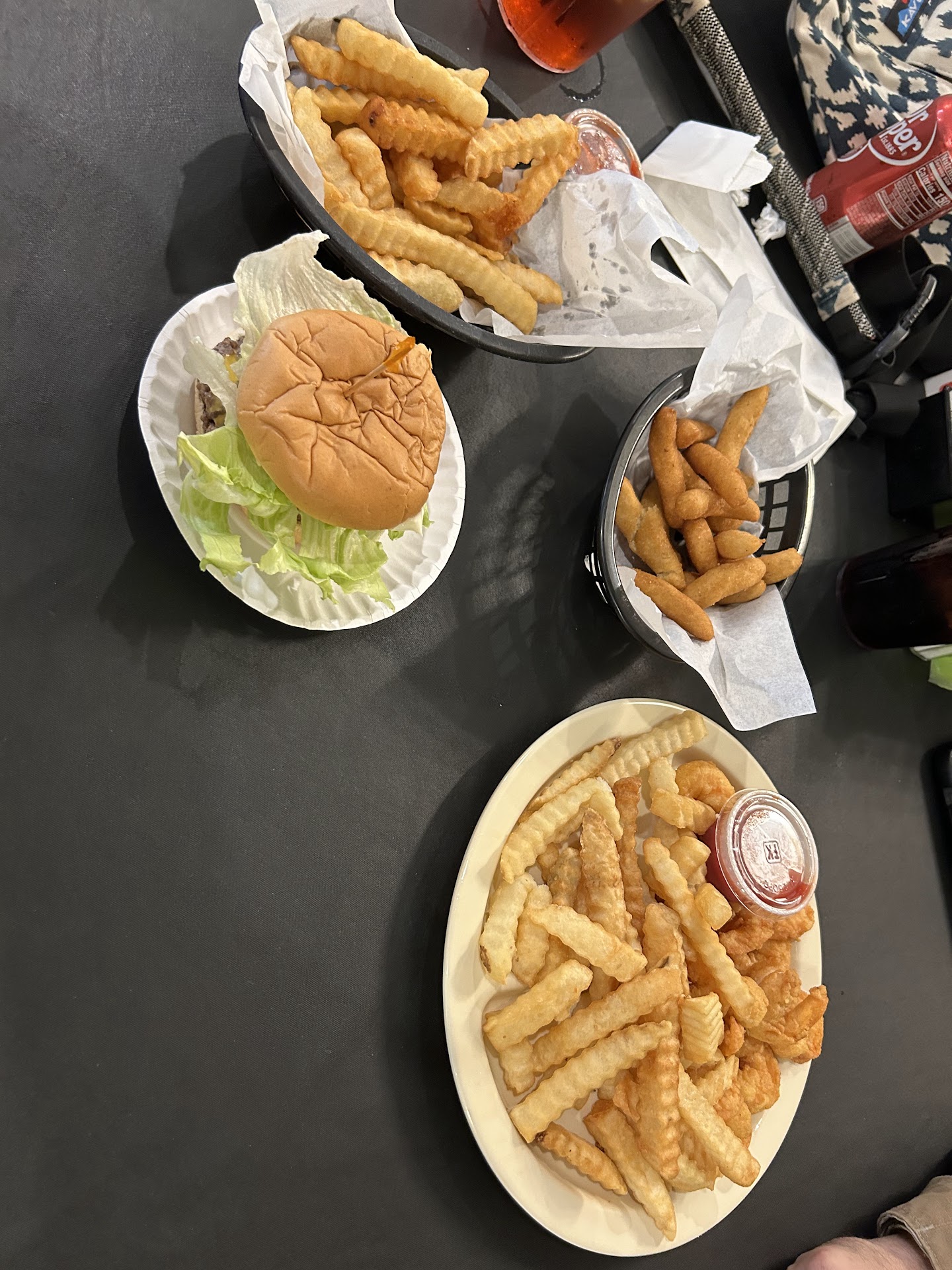 THERE IS ALSO A ROBUST MENU FROM WHICH TO CHOOSE especially Shrimp Plate or Freshly Made Burgers and Pork Chops. They are known also for their Delicious Chicken Salad which many people take home by the pint/pound.