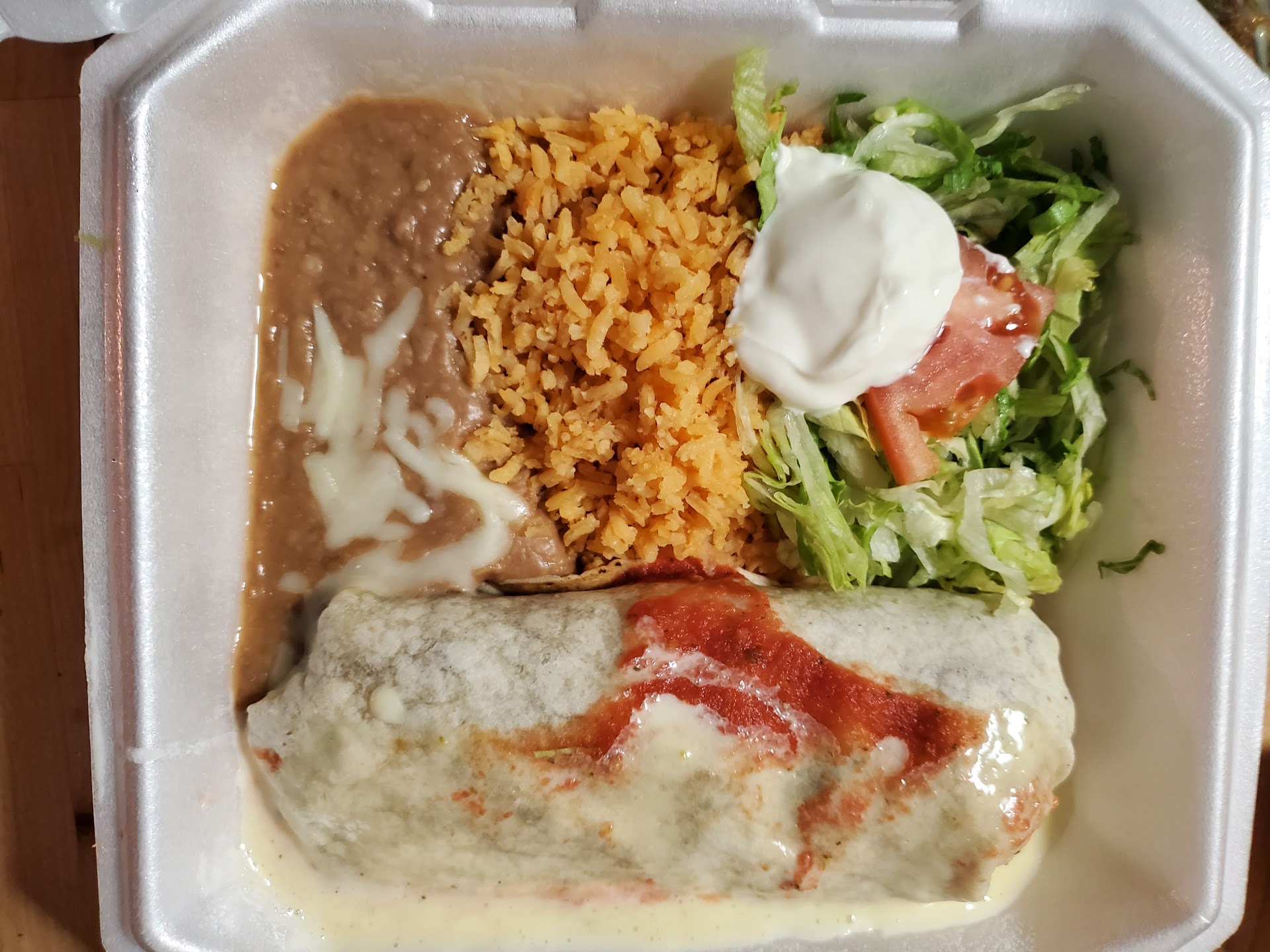 Read moreVery disappointed! Was in the mood for Mexican food....I got the Chile Colorado and it was not what I expected at all. The chile was from tomatillo not from chile colorado. The meat was in long strands not in cubed cut steak form. Rice and beans were decent. The enchiladas were nothing special either. The cheese enchilada seemed as if it was pre-cooked the cheese wasn't melted it was like a stiff long piece of hard cheese. The chicken and beef enchilada were okay. To top it all of they sent me the wrong dessert. I was at least looking forward to my flan but opened the box to a sad looking piece of...