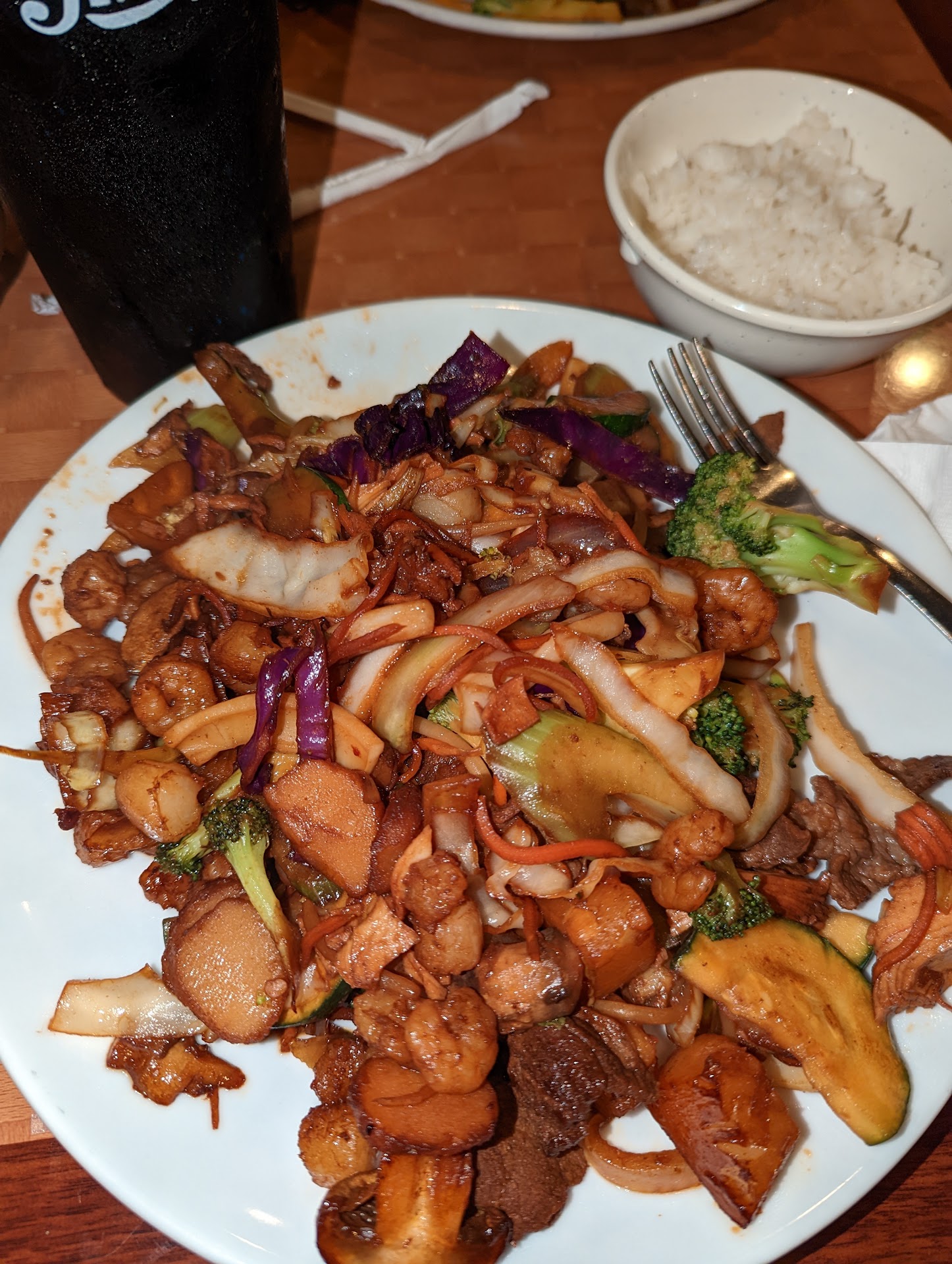 I was extremely disappointed and compared to other Mongolian grills, I was let down. The 1st disappointing thing was having to return my tea. It didn't look like tea it didn't taste like tea. My assumption was there were using some sort of syrup, I did not see a tea urn where they were brewing it. Secondly I would prefer to be able to ladel my own sauces for my dish. Not only was the sauce selection poor but I was completely flabbergasted by the choice of garlic water. Go to a real Mongolian grill and it will be garlic, heaping ladle as opposed to tossing some remnants of garlic flavored water in your dish. The sesame bread was a joke. Hard and chewy, I could hardly tear it. As opposed to small soft and warm as I should be it i have had other places. The buffet side of options other than Mongolian style was a joke. Nothing like fried frozen food that is not even warm anymore. And the place was busy. And lastly was the rice. The white rice was not fresh and hard. And the fried rice was not fried rice. It was white rice doused in a soy sauce. I asked the server about it and she got a little bit bashful and said yet it's not fried rice it's something else. Hands down laughable in comparison to Bodobo...