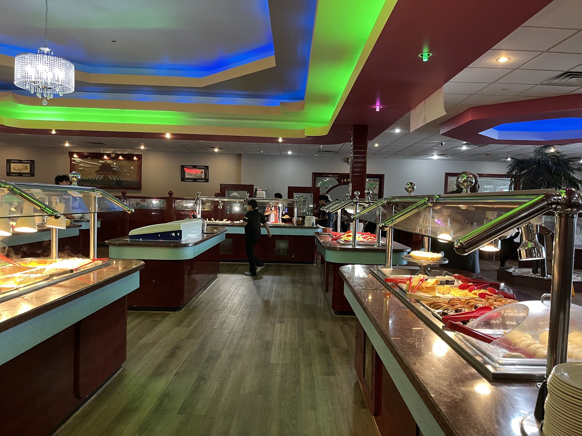The sauces all tasted watered down and the meats were bland or tough and some tasted like they sat in water for a week. I think they may be trying to cut cost by adding water to their sauces and the taste and consistency suffers greatly. I sampled almost everything I could that wasn’t straight up American (pizza, wings, etc) and I nearly spit everything out. Too many selections were bland and watery and probably for the aforementioned reason. I did not try their sushi so I cannot review it. I was given unsweet tea instead of sweet and anyone who takes that first unsuspecting sip knows the shock and displeasure of the mixup.