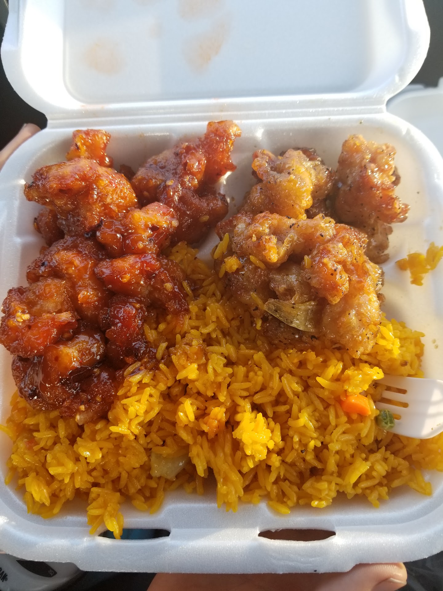 Read moreAt first glance I was a bit hesitant to try this restaurant because of appearance and lack of cleanliness. Then one day my mom commented on how good it smells coming from the Jade Express. So we tried it and the food is delicious and the portions are large. The only bad thing was trying to eat with plastic forks and knives because you will need them to cut up the large pieces of meat. Overall we were both very impressed and completely full when we left. I recommend the Spicy Bourbon Chicken and the name is deceiving because it wasn't that spicy and you can't taste any Bourbon but it is cooked in a delicious brown sauce. I got mine with steamed vegetables to cut down on the carbs. I highly recommend you try this place for good food...