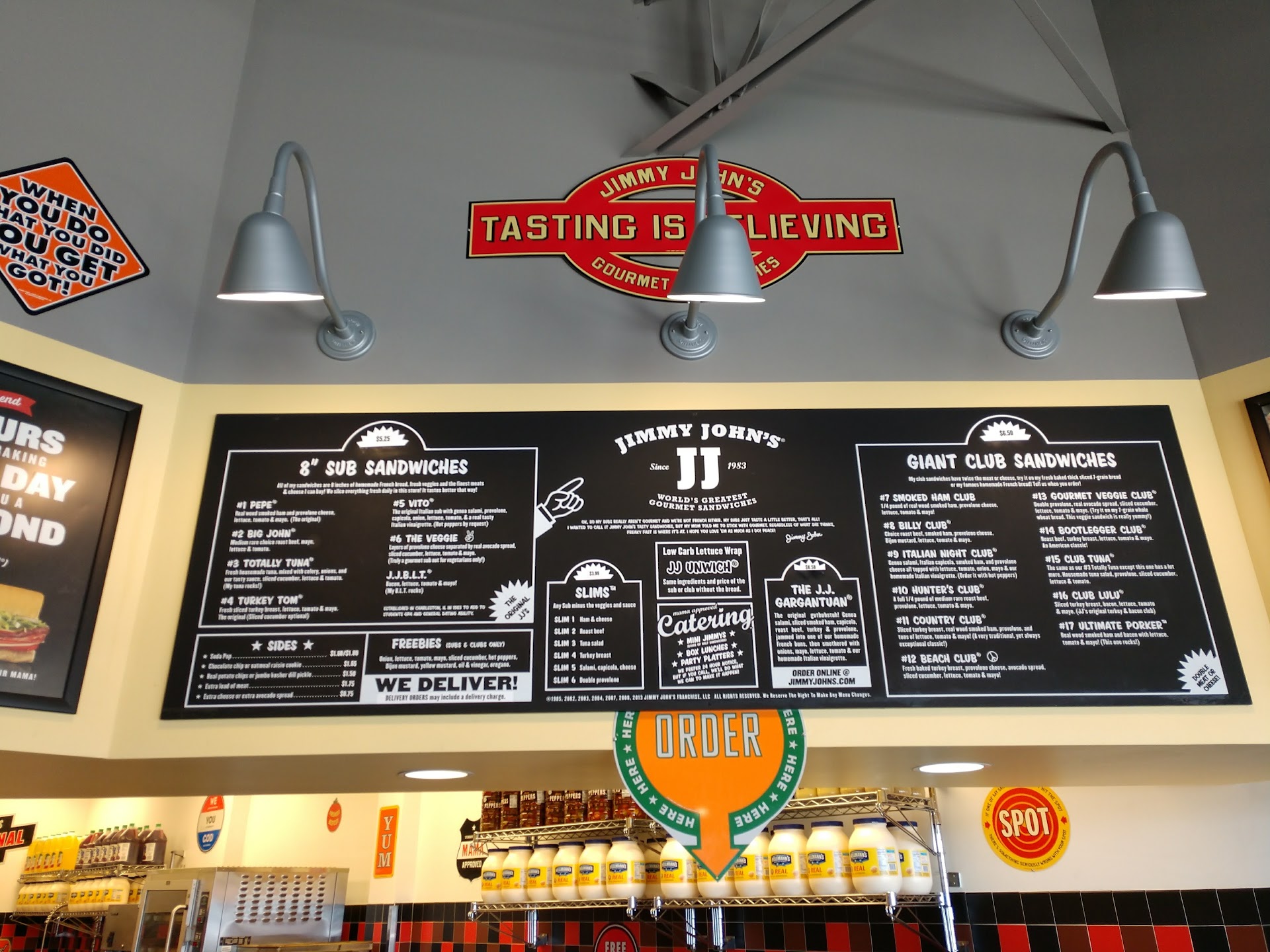 1 The jimmy johns logo sign was out. Only the "hn" was lit. WTF! You cannot not really see the sign from the road. You have to really LOOK to find the place at night if one don't know the area.