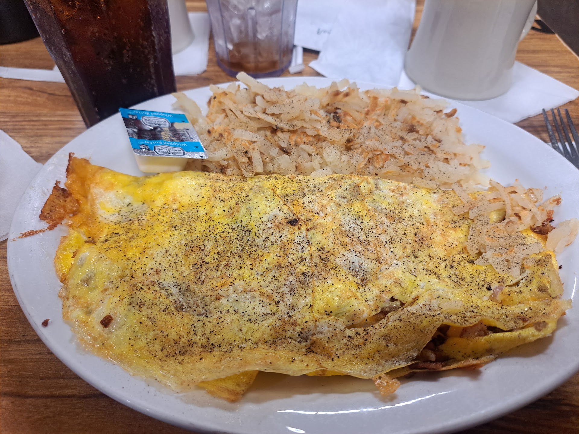 Today I visited this establishment with my family after church. We waited over an HOUR just for our food to arrive which wouldnât have been an issue if the order was correct. We did wait long periods in between for refills. There were also people who were seated AFTER us that were given their food BEFORE us. My mother n law found hair in her food. We notified two servers. One who was our waitress and two, the waitress who took the dirty plates. My fiancĂ©s order was incorrect. She asked for well done hash browns and received mushy hash browns. We notified the waitress. She took the plate to âfixâ. After 20 minutes of waiting while everyone was done with their food we decided to leave. She brings the plate at that time. The plate had a combination of mush and burnt hash browns (idk how thatâs possible but, it was) and my two crusty burnt eggs which were supposed to be over easy. We went to pay and owner was at register. I notified her of the hair, and the eggs/hash browns situation. She got defensive, disrespectful, and rude when addressing the issue. She said those 2 waitresses should have notified her and didnât. She said that the state of my fiancĂ© ânew/correctedâ plate was the best they could do and had no response for the hair in my mother n laws food. She did not correct the situation. She did not fix the situation. She did not apologize. She argued not only with me but, also other family members as she was unhappy with me notifying her of the issues in her establishment. I then paid full price. And she asked did I want to add a tip as we paid with card. I said no. She rolled her eyes handed me the receipt, and walked away.