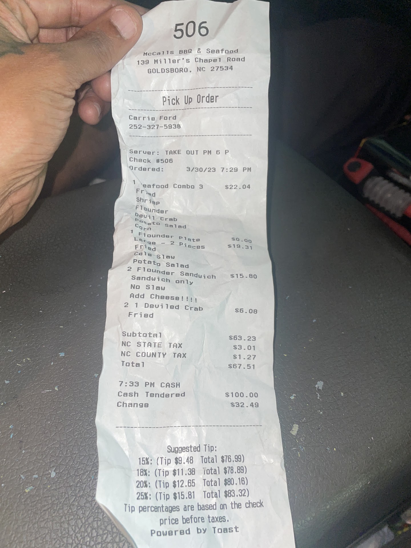 Ā Ā Ā Read moreThis is a NC staple, an institution if you will. Especially in the eastern region of the state, all natives are aware of it's existence, and all have been a patron at least once. The food and service at this location, identical to them all, it's outstanding. It's so good in fact, the restaurant name is often referenced when comparing pulled pork barbecue to any other source. While the establishment definitely sells much more than pulled pork barbecue, it is that which it is mainly known for. For sure, there are those that find the taste of barbecue at different establishments better, and many that find other establishments to be lacking when held to The standard of McCall's barbecue and seafood. However, there are none, absolutely zero, that have ever uttered the words; "I don't like their barbecue". If you are a novice or new to the amazing taste of the jewel that is "North Carolina barbecue" this would be, the absolute best place for your first, and most likely best encounter with the dish. The cooking of North Carolina barbecue, and all that goes into the preparation is an art. It's an art that macaws has mastered, and many attempt to replicate. Just as important as the method of cooking, and the particular cut of meat from the hog used, is the sauce. That's spicy tangy vinegar based sauce that is indicative of North Carolina barbecue can make or break the dish. McCall's just does it like no other, when it comes to combining preparation, cooking, cut of meat, and sauce. You will not be disappointed. If you find yourself to have additional room in your gut after indulging in their signature dish, you will be equally impressed with their chicken, mostly fried of course, and their seafood. This restaurant also offers among regular menu items, a daily buffet that contains not only their signature barbecue, but a special dish that changes daily and is served every day they are open. It's simply the One-Stop shop for all foods North Carolinian. It would be Paramount to sin, if one deprived themselves of at least one visit to this outstanding...
