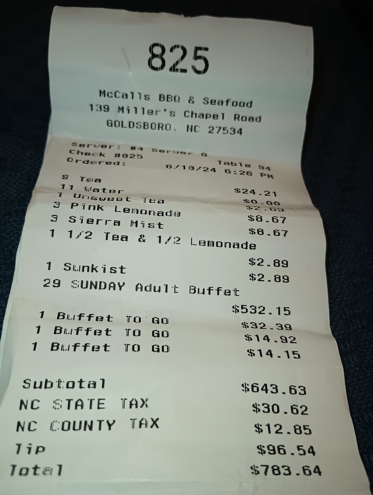 Read moreThis is a NC staple, an institution if you will. Especially in the eastern region of the state, all natives are aware of it's existence, and all have been a patron at least once. The food and service at this location, identical to them all, it's outstanding. It's so good in fact, the restaurant name is often referenced when comparing pulled pork barbecue to any other source. While the establishment definitely sells much more than pulled pork barbecue, it is that which it is mainly known for. For sure, there are those that find the taste of barbecue at different establishments better, and many that find other establishments to be lacking when held to The standard of McCall's barbecue and seafood. However, there are none, absolutely zero, that have ever uttered the words; "I don't like their barbecue". If you are a novice or new to the amazing taste of the jewel that is "North Carolina barbecue" this would be, the absolute best place for your first, and most likely best encounter with the dish. The cooking of North Carolina barbecue, and all that goes into the preparation is an art. It's an art that macaws has mastered, and many attempt to replicate. Just as important as the method of cooking, and the particular cut of meat from the hog used, is the sauce. That's spicy tangy vinegar based sauce that is indicative of North Carolina barbecue can make or break the dish. McCall's just does it like no other, when it comes to combining preparation, cooking, cut of meat, and sauce. You will not be disappointed. If you find yourself to have additional room in your gut after indulging in their signature dish, you will be equally impressed with their chicken, mostly fried of course, and their seafood. This restaurant also offers among regular menu items, a daily buffet that contains not only their signature barbecue, but a special dish that changes daily and is served every day they are open. It's simply the One-Stop shop for all foods North Carolinian. It would be Paramount to sin, if one deprived themselves of at least one visit to this outstanding...