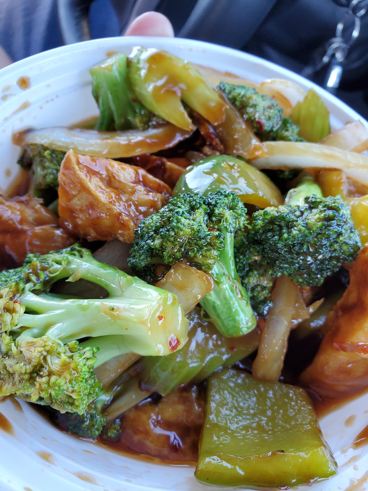 I ordered sesame tofu, vegetable soup and szechuan tofu. The sesame tofu was great, very fresh beauful broccoli. Really disappointed in the szechuan tofu, no spice at all. :( I expected a bit more. Too full, have to try the soup later. :) Nice size portions.