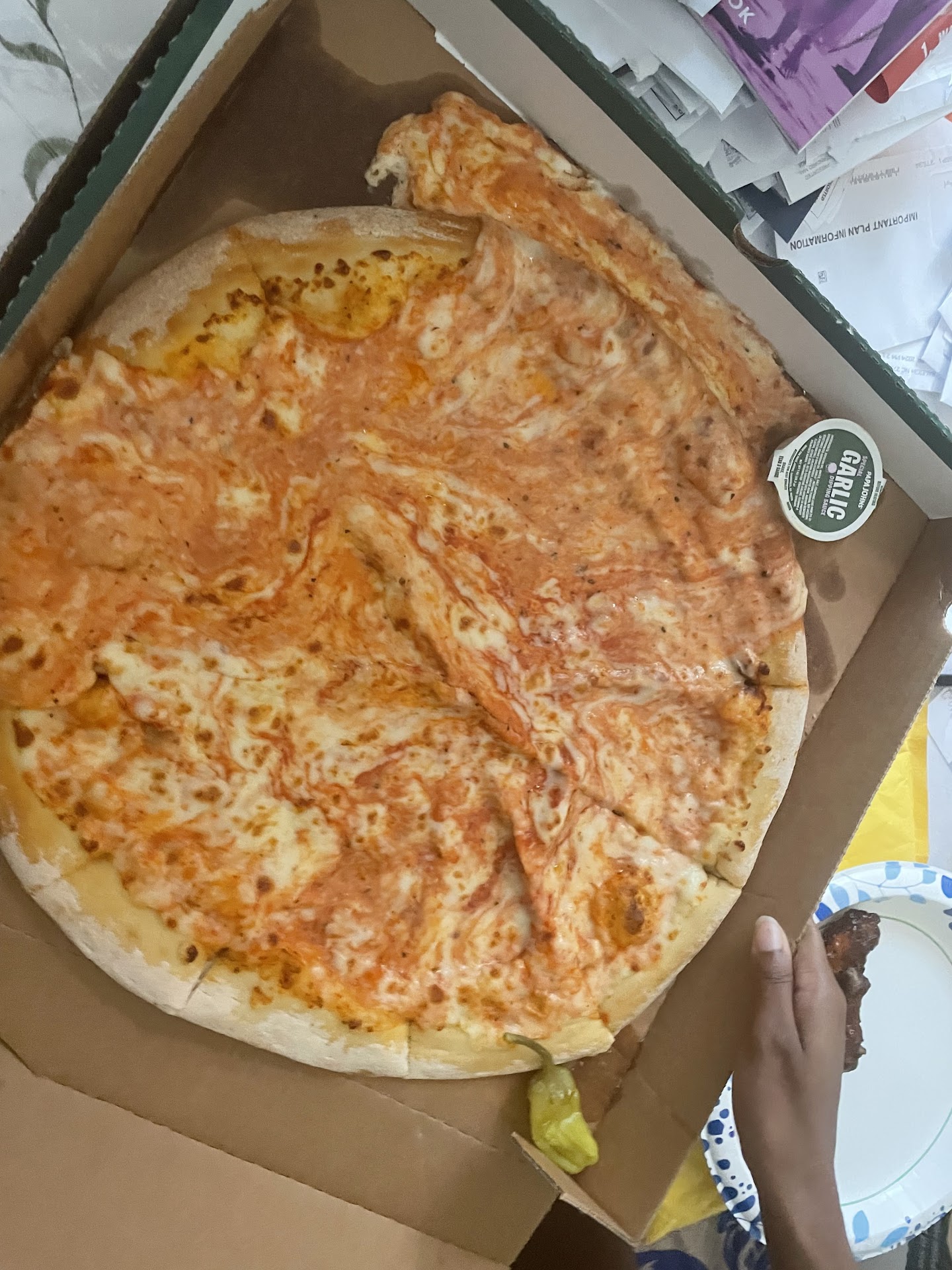 Ok, this is not the standard y'all. Lol ok, the last one I got was beautiful, this one wasn't. Papa Johns, please keep up with your standards when sending out your product. Right now, you are my fav.
