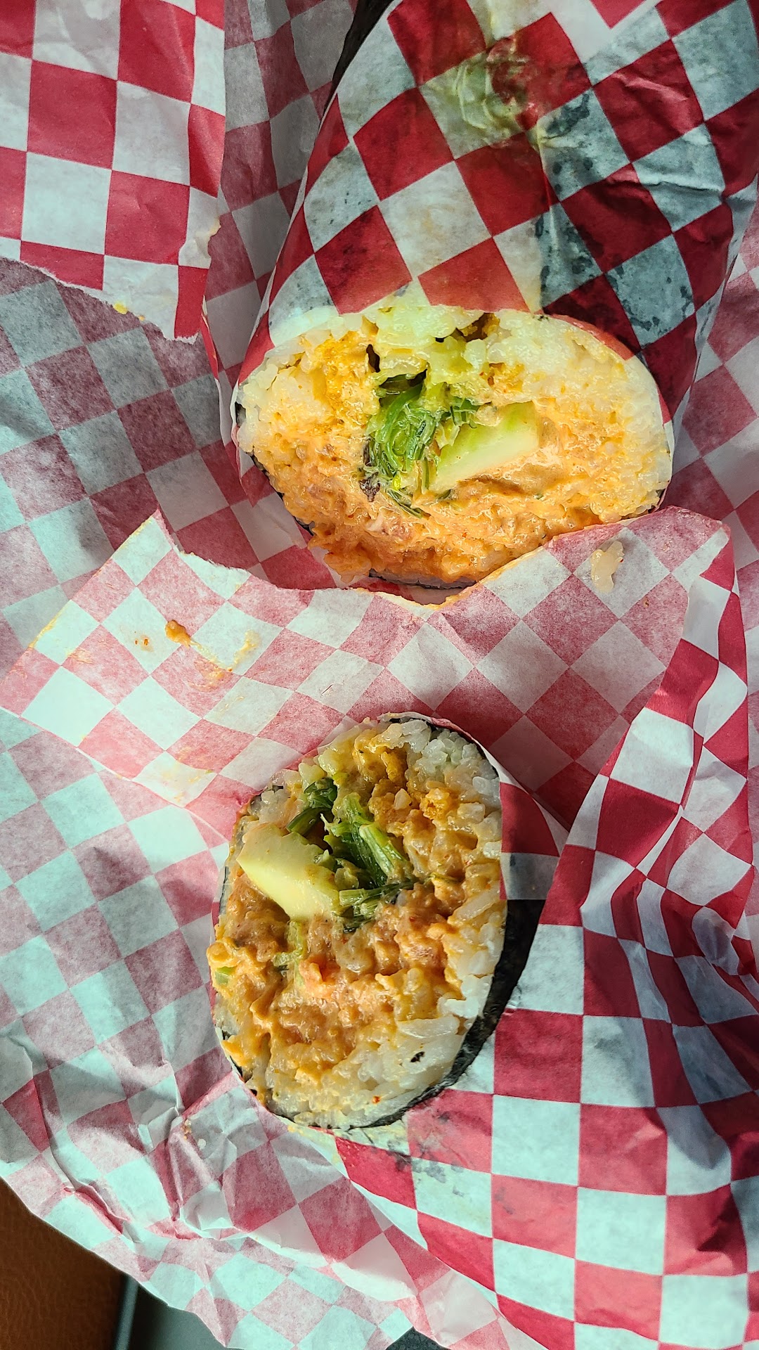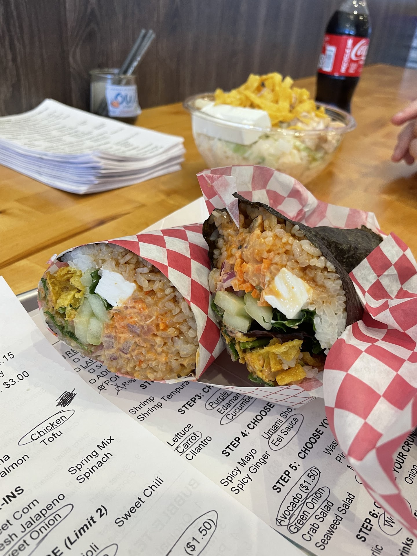 I got a poke burrito with spicy tuna, Ahi tuna for protein, seaweed salad, spicy mayo and cucumber.