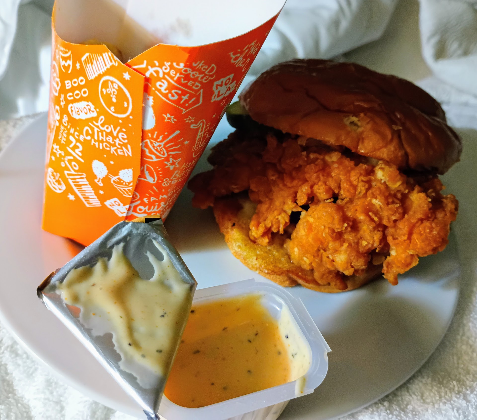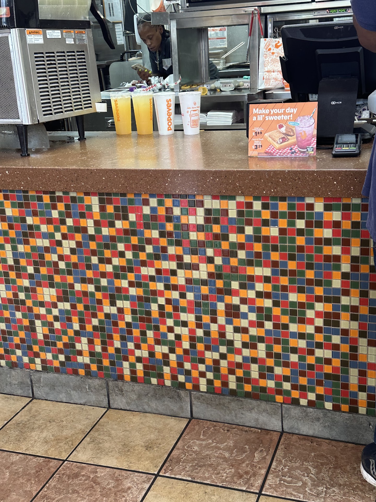 Read morePopeyes are great. Right now they feature a blueberry cream cheese turnover. While they are very warm eat them it is fantastic. I love their chicken and the sweet heat sauce is awesome.servive was slow and shift change was going on so I had to wait for my turnovers I had to pull over to the side lol...2ithdrs before me were there to.i mosied on up into the curve and almost blocked everyone going thru But I was just waiting for blueberry cream cheese my first ones. After a while I was still there and had new ones behind me but I still say in that hot sun waiting because they had to be awesome...after I was there for 20 minutes someone came out and asked if I was waiting for the pies I said yes.. during shift change the orders got a little mixed up but it was coming soon. And Yelp here it comes But it wasn't what I ordered..so back to the drawing board I wanted the 8piecd special with 3pies and am extra lg side of beans and rice. The girl asked if I needed anything else while I was Waiting I said please bring me an extra large sweet tea I was so hot but another 8 minutes went by and she came out again no tea but this time I did have chicken but no sweet heat and I just said thank you and left the fast food was all together I was there for 43 minutes and didn't get ugly. Because my intention was to stop and get 1of the best chicken sandwiches around and even though my order was way to much I wanted to surprise friends with Popeyes And for my wait time she gave me some fries but they were cold and floppy..it was ok I didn't want fries. I love Popeyes and at that corner u have many choices I choose Popeyes. Great food the covid thing has restaurant staff messed up.no help...