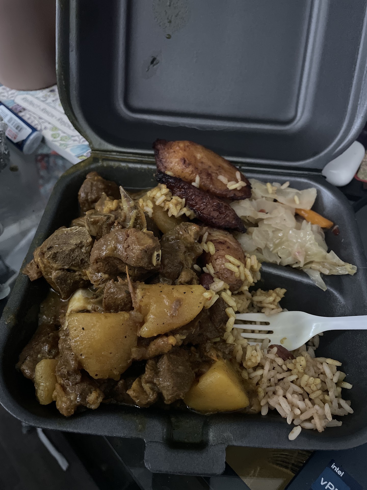 Read moreI left at 1:50 to get something tasty, I let my boss know I’d probably be late getting back from lunch since I left so late to get the food. I made it back home at 2:05. Food piping hot. Spice level is perfect and the flavor is phenomenal! I got the curry goat and this place actually cooks the potatoes in the curry. Quick, tasty, and it’s Jamaican food served in the south, the price is the price. No complaints here! Huge...