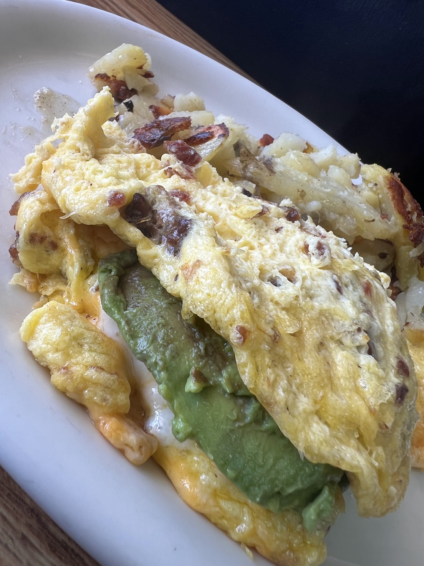 Walking to the door there was the scent of deliciousness wafting through the air. Once in the place had a welcoming cozy feel. We were greeted immediately by the friendly staff. It felt like moments later I was seated with a hot cup of black coffee. For breakfast I was torn between the Chorizo Scramble and the Pork Chili Verde Omelet with hash browns. Our server Sierra suggested the omelet and it was a great suggestion. The carne was tender and flavorful, it went well with the cheese filled fluffy omelet. The hash browns were perfectly crispy and went well with the house salsa. It wasn’t spicy for me but I enjoyed the flavor. (My wife says I have eaten so much spicy food that I can’t taste spice anymore.) My breakfast came with sourdough toast and I know there was jelly on the table but the salsa verde with the buttered bread was a better combination for me. My wife went with bacon, avocado and cheese omelet with home fries and wheat toast. The home fries were perfectly seasoned and cooked. This is a great place to come in and have a good meal, enjoy friendly attentive service and quiet enough for a intimate...
