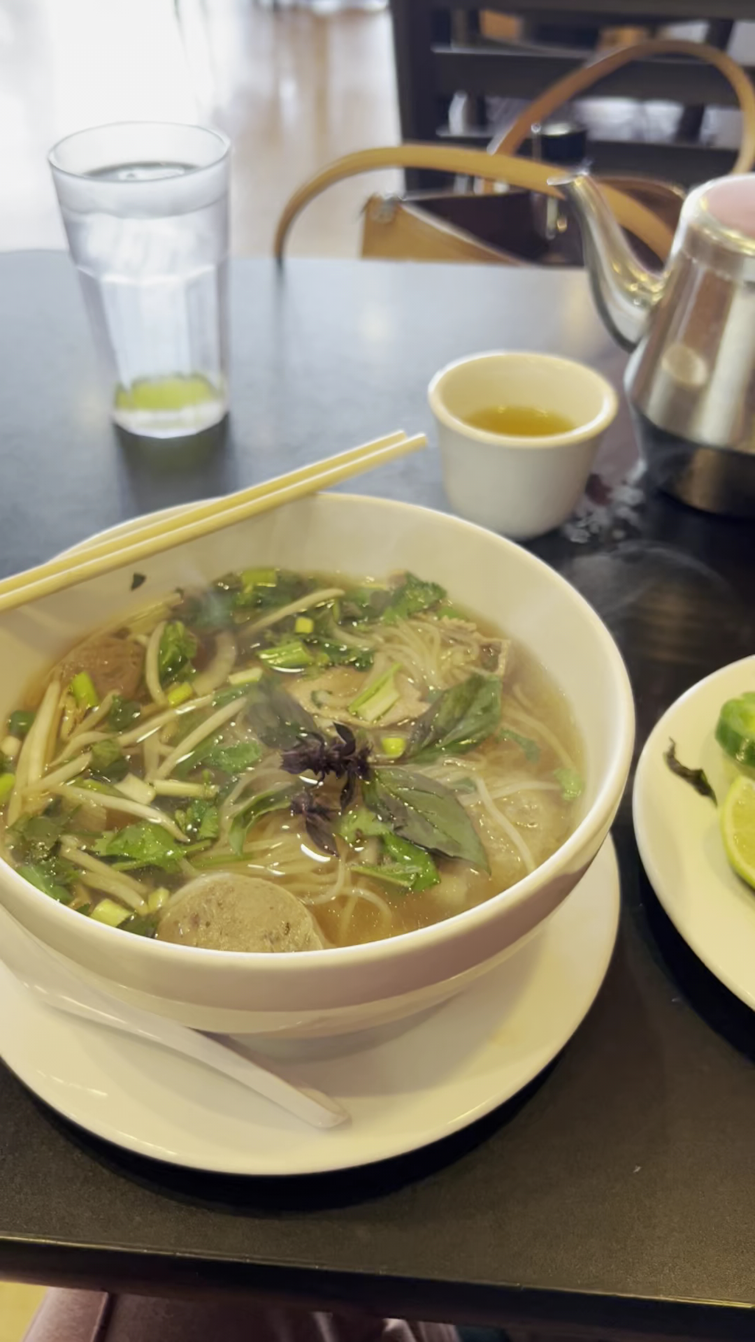 Read moreThis is what you need on an overcast day. The broth was excellent as far as restaurant broths go. I got the P4 - rare steak and beef meatballs (with tiny chewy tendons in the meatballs). This is authentic, not watered down pho, served the proper garnishes (Thai basil and bean sprouts). It’s a light soup, despite the beef and the smaller portion was more than enough for me.
