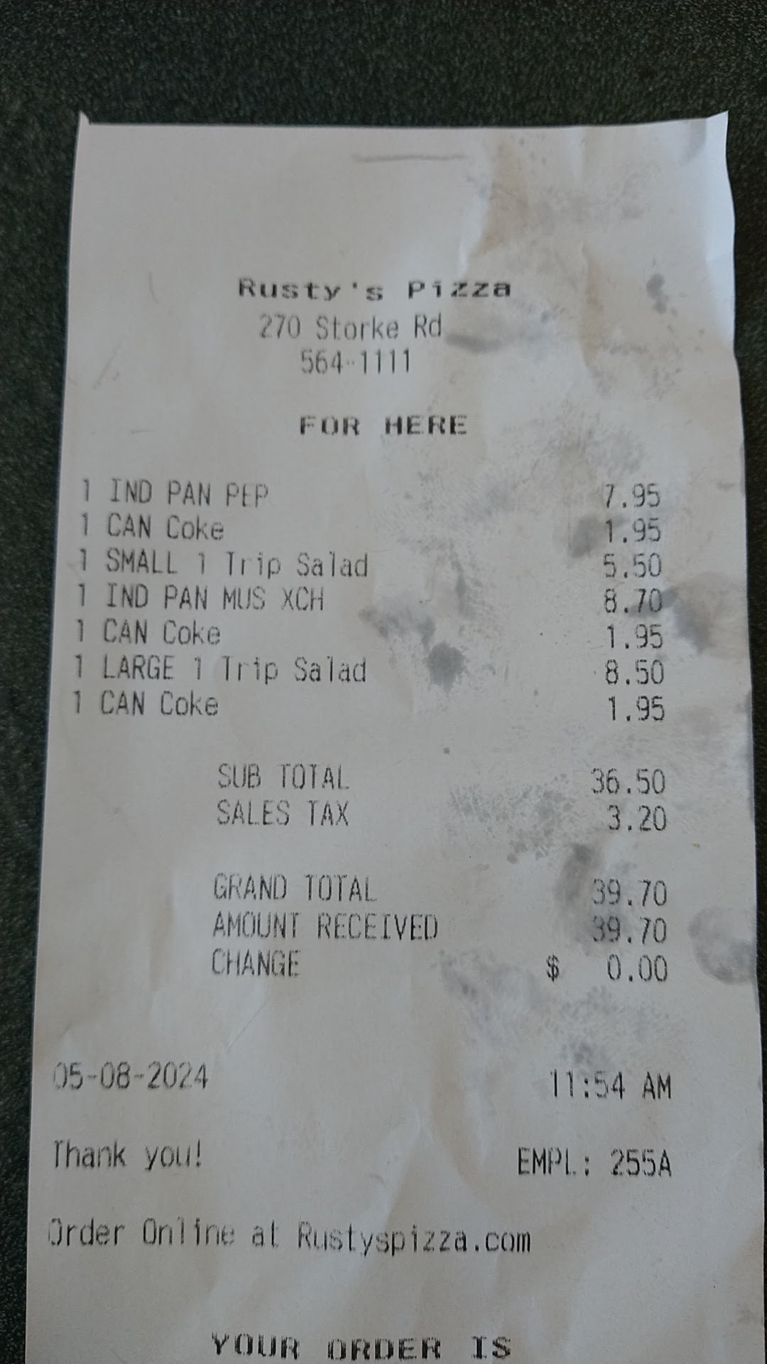I got food poisoning on July 5th and July 13th. I decided to call to let them know that my daughter and I got sick while after eating their pizza. I didn't want anything. I didn't ask for anything. I didn't even need a manager to call me back. After speaking with Abby, the supervisor, I have decided to never order from Rusty's again. Ever. She was rude, defensive, was yelling at me, and escalated the call so badly that I've decided to contact corporate when they open on Monday.