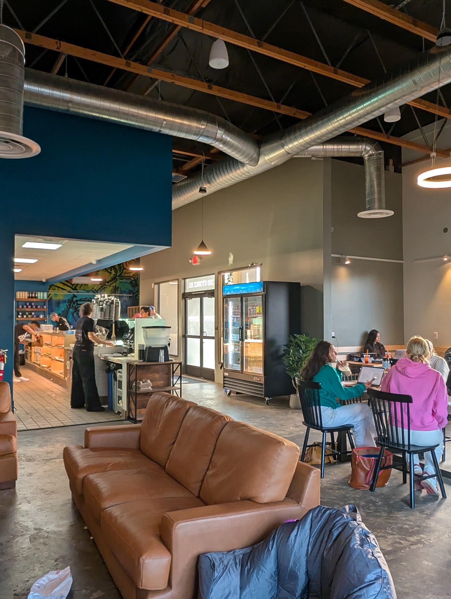 Food is great and so is the atmosphere. Wifi is fast and does not randomly drop. Bathrooms are clean. Seats are comfy. Drinks are meh, but I guess the selling point is the donuts.