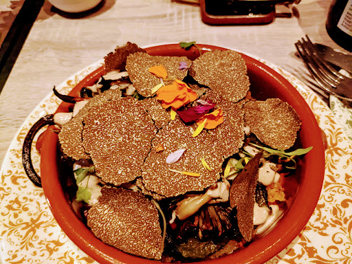 One of the more bizarre places I've been to. Went about a month ago, but I still think about it. Cocktails were not good. I think one was called a passion fruit margarita but there was no PF flavor, just orange. The olive bread was the same way, microscopic amounts of olive, but the worst part was that it was charred beyond recognition and completely inedible, oh and it cost like 10 bucks for 5 tiny pieces.