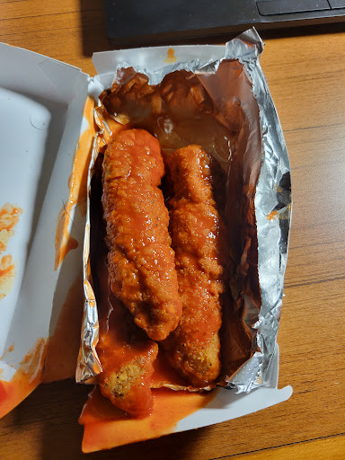 Fries were nice and crispy and even had a chicken bite mixed in for me to try, so i was glad I asked for BBQ sauce.