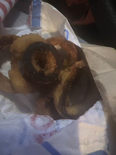 I ordered 3 different burgers, med Fry. Med. Drink, And an order Mozz Sticks. That was supposed to be the whole order. The guy taking my order was rude, obviously tired from the day but its still your job to take my FULL order. I was rang up for a med. Mozzarella stick, 2 Burgers, Med. Drink, and a Med. Jumbo popcorn chicken. I tried to correct it, He cut me off halfway and submitted the order and gave me the total even though I said I wasn't done with my order and needed it fixed. so I waited till the carhop came so I could explain the situation.