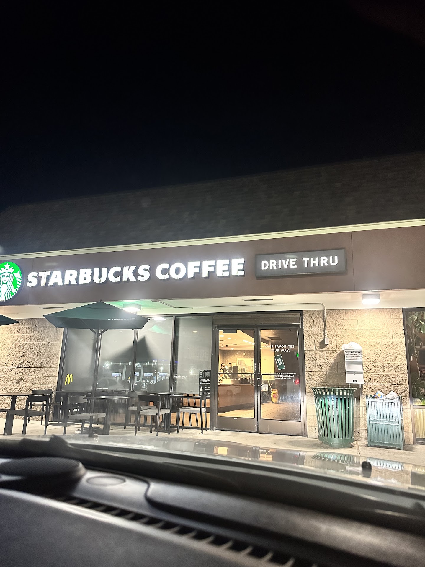 Read moreI can't believe this place operates under Starbucks name. I stopped by the drive thru on my way down south. I ordered a grande house coffee with cream and 2 splenda. They were out of Splenda, no big deal I asked for sugar. I was the second car in line and I could see there was 1 person inside. By the time I got up to the window I waited 5 min to get my coffee. It was so hot I couldn't take a sip for about 10 min. Kinda weird for just a regular coffee. When it finally cooled down enough I took a sip and instantly knew something was really really wrong. It tasted like hot water and spoiled almond milk- with maybe a splash of coffee. It was sooo disgusting!!! I should have gone to the gas station across the street. I haven't been to any Starbucks since, it...