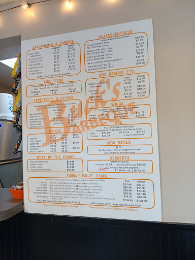 Ā Ā Ā Read moreDrive through order last evening a few cars in front of me. There was a guy taking orders in the line. Ordered loaded potato and a bbq sandwich with a side of Mac n cheese. Asked for think sause mild. Asked for a few extra because the loaded potato is big. Got to the window and conferm the order and asked for the same extra sause again just to be sure. Get order drive to a spot in the lot just to check and just a small sause for potato and another for the sandwich. Went inside and asked for a couple more and the young kid made me pay with my card again for the sause. The food is pretty good but the kid working the window has no people skills. He seemed enjoy the situation. I will prob...