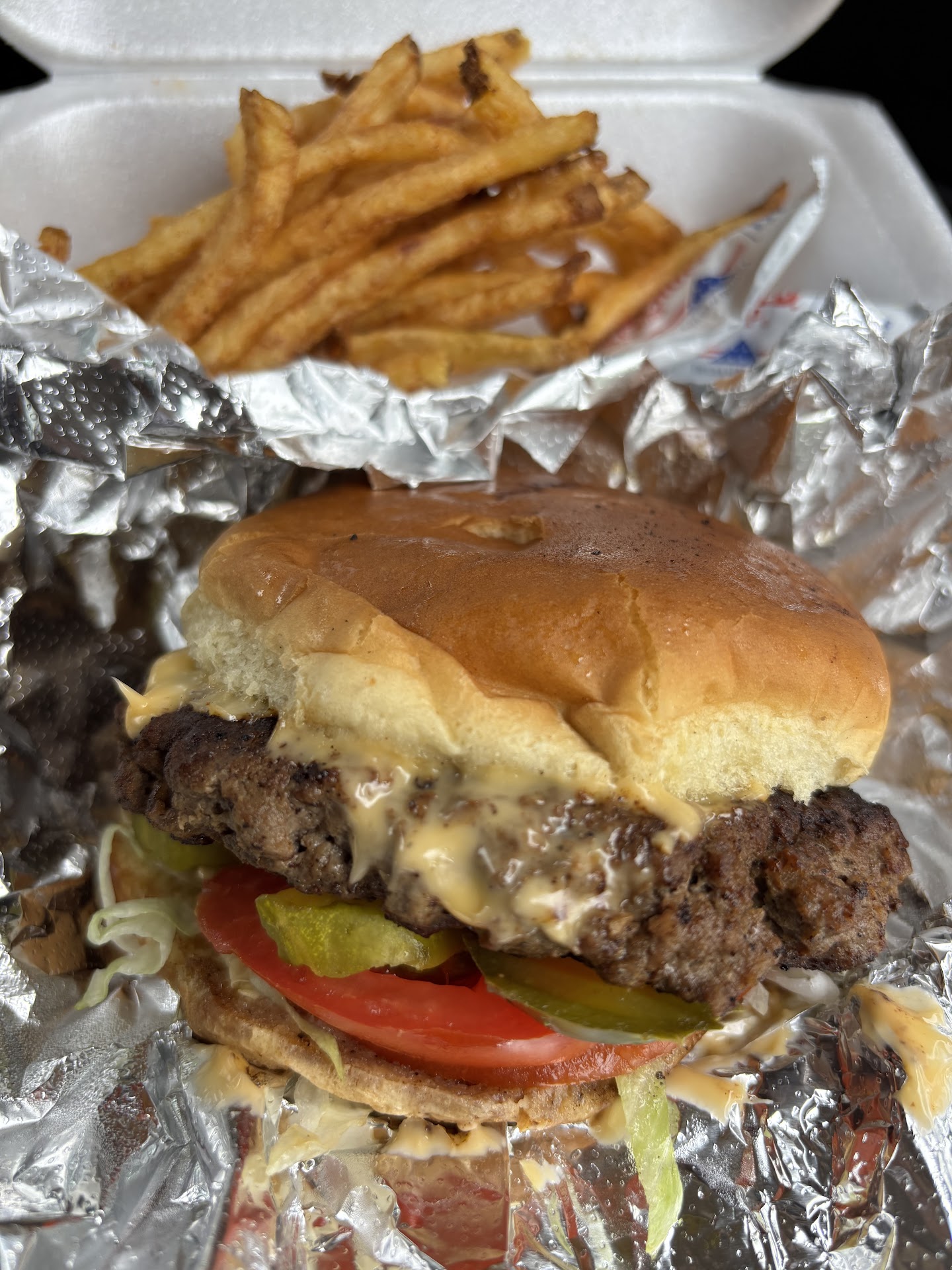 First time here and it smelled delicious. I fact it remind me of my home town burger joint Hi D Ho burger joint in New Mexico. My husband order a jumbo and I order a regular cheese burger with grilled onions. It was delicious and on point. Everyone that work here are very professional and helpful to answer and customize your burger and fries. I forgot to mention the fries are home made...