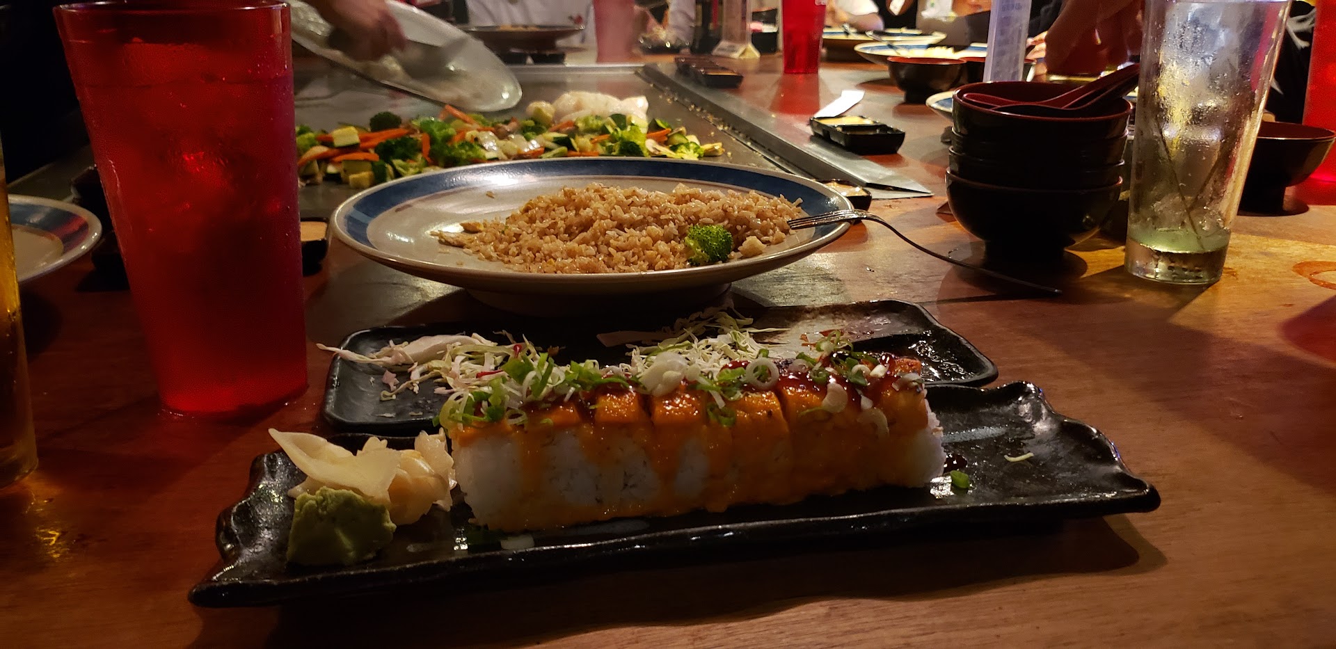 Read moreDamn! Wished I had read TH's review first! We left there about an hour and half ago, and had to come give this place a review. If it was even so-so mediocre, I wouldn't even bother posting this to inform everyone! We arrived, got seated quickly, place was half empty (Saturday at 7pm!). 5 minutes later, I stood up and waved to get attention, so guy came over and ask what I need, I said: "a server." 5 minutes later, I walked over to the hostess and asked for a server! 5 minutes later, a server came! I think he probably killed his dog or something, he was totally irritated when we all ordered water...geeze, we had 5 kids, do you really expect that we order 5 gallons of beer? Then he told us that we can't have tempura sweet potatoes, the tempura is preset with whatever they put in it, so we can't change it! Wrong answer buddy! We have been in the restaurant business longer than he has been waiting tables! I ordered seafood udon soup. About 5 minutes later, a waitress brings us our water, she brought one iced green tea, but we ordered two HOT green teas. She tells us that she is now our waitress cus the 'waiter' wanted to switch tables with her, basically he abandon us, wrong move, I was there with the most generous tipper tonight, always tips more than 20%!! My seafood udon soup came out stir fried in a sweet soy sauce, I need a gallon of water to wash that down, so I didn't eat it. The steaks were super salt too, I guess they get salt for free there. The sushi was all smothered in a sweet creamy mayo sauce, thick layer of rice, didn't even see much of the soft shell crab. Basically, super cheap with the fish and stuff, lots of rice, lots of sauce. Didn't refill our water, didn't come to ask if we need anything, didn't come to ask if food was good, we had to wave them over or they didn't come over. BTW, the parking lot was pretty full, but it was half empty inside...don't go, you are better off at Mcdonalds! I would like to give this a 5 DUMPS...