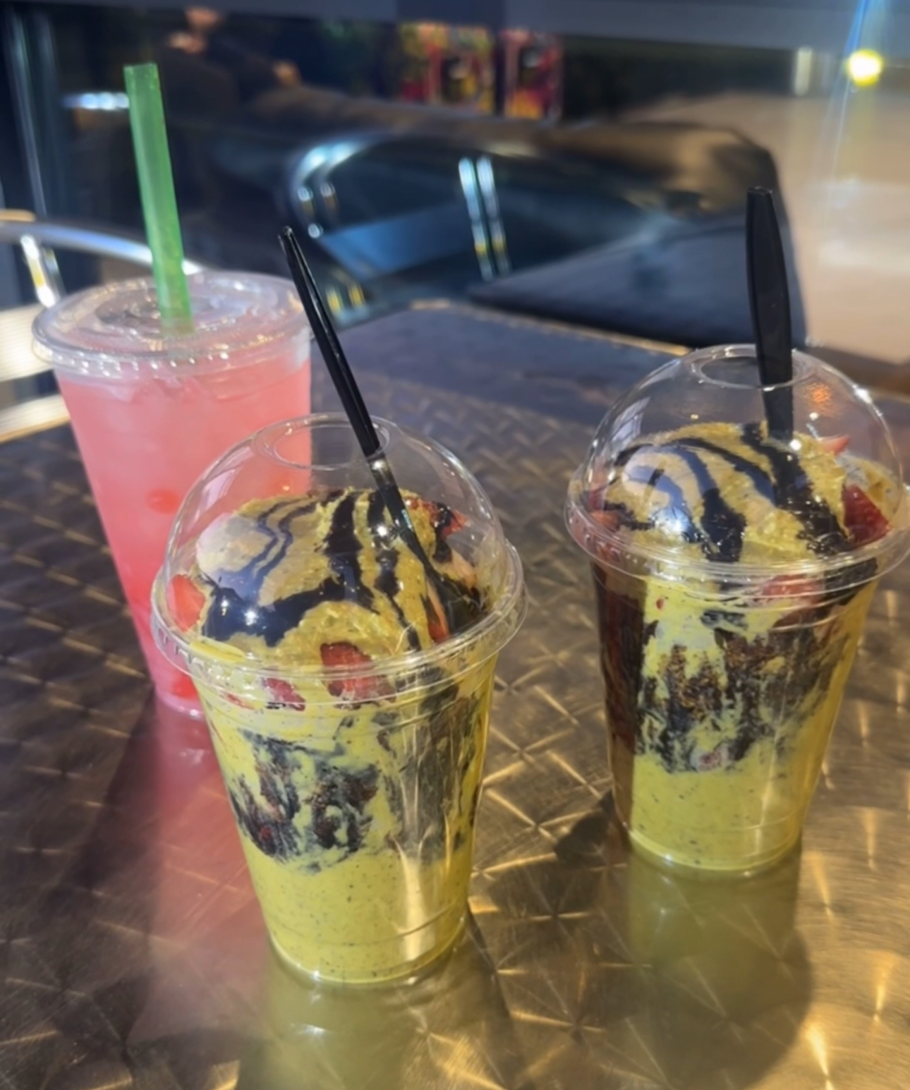 Read moreStopped by for a quick treat while visiting from out of state and was delighted with how clean the establishment was! samantha the cashier recommended the taro smoothie with tapioca pearls and it was so delicious! This is the first boba shop iâve tried where the taro isnât watered down or flavorless. My friend got a strawberry refresher with lychee jellies and i wish more boba shops offered this beverage option! it was VERY refreshing đ. They also had the viral dubai chocolate bars and strawberry cups i have seen all over tiktok so i had to try!! I must say i had a dubai chocolate before from a shop back home in ND, and i wasnât a fan, but when i saw they offered the strawberry cups we had to try! At first i thought it came with a hefty price but after tasting it, it was very well worth it!! Each cup cost us $19 which wasnât bad compared to the $32 dubai chocolate bar i bought in the past. Definitely can taste the difference in quality from the dubai chocolate i had back home. In the picture is our 2 dubai chocolate strawberry cups and my friends strawberry refresher, my small taro smoothie didnât make it out...