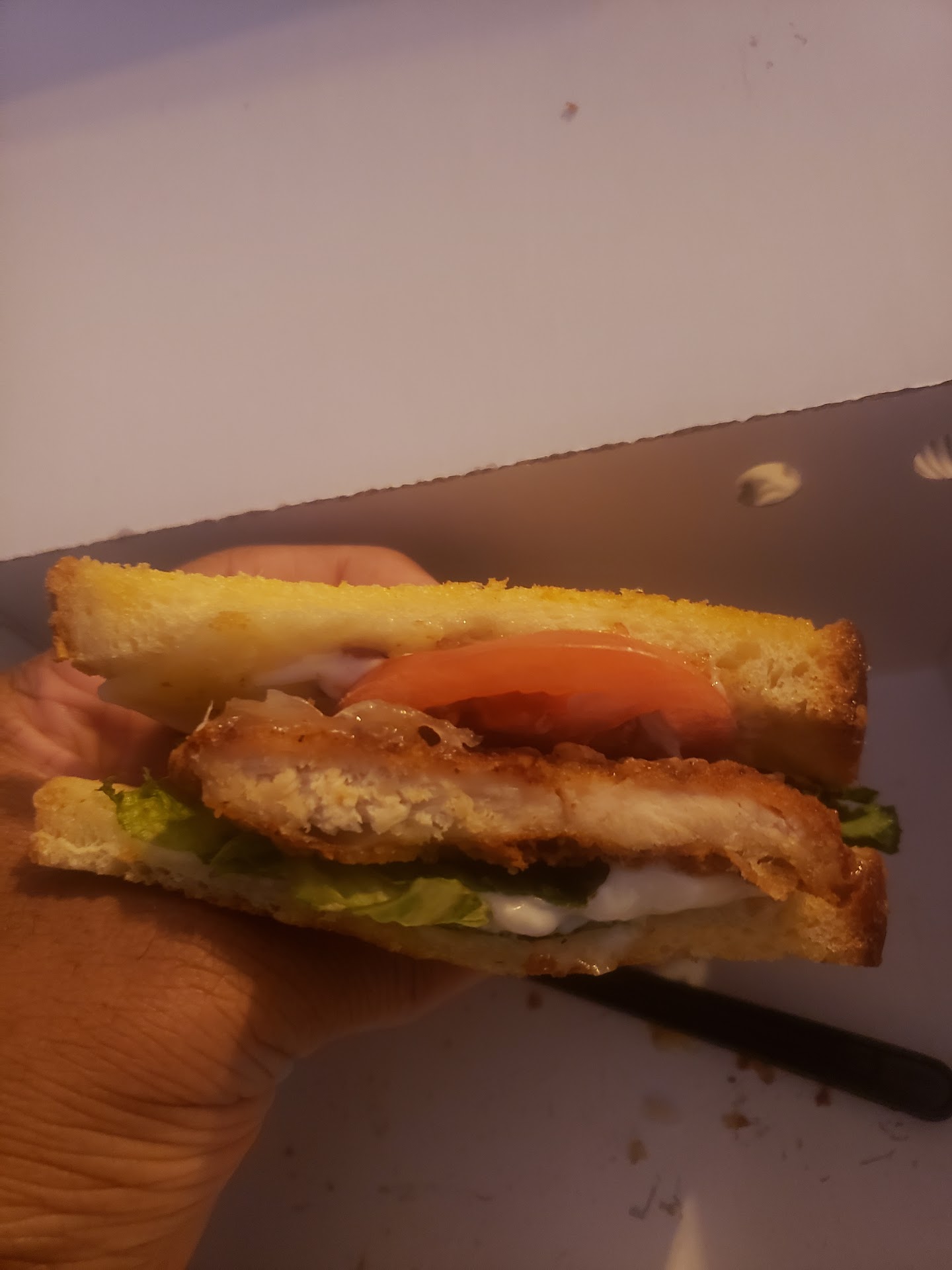 Read moreMy very first experience at this Dennys and I got an Old Fried Chicken Patty with my Chicken Bacon Ranch Sandwich. To add further disappointment, I ordered Onion Rings I didn't receive. I got all the way home only to see that I got a Horrible Sandwich and No Onion Rings. When I called to the store to see what happened, I was told they ran out of onion rings at 6PM. I can understand running out as new as they are, but to not put any side with my Sandwich as a replacement NOR let me know I didn't get onion rings or offer another side when I walked in to pick up my order SEVERELY Disappointments Me. I was told that I'd be refunded but no clarification was given about if the refund would be for Both the Onion Rings and the Sandwich or just the missing onion rings. I might have been more accepting of the poor Sandwich if I had fresh onion rings; I might've been more accepting of the No Onion Rings if I received a substitute or been made aware.....I'm an understanding Man as I've worked in the food industry before, and it is easy to make mistakes as we're all human and uh-ohs do happen; but the ball was dropped HEAVY on this! Maybe it's because they're new, but this very first impression was not a good one made. I have pictures of the chicken Sandwich and the knife is for reference of the size of the old chicken patty to the bread. We won't even get into me having to walk in to pick up my...