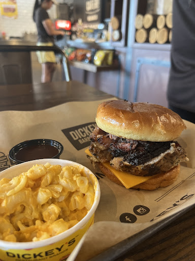 The manager walked my completed sandwhich and side to the table I was sitting at and left me with a smile! The meal left me feeling: full, satisfied, and excitedly anticipating my next visit to this Dickeyâs location. Last note: the employees both warmly greeted me as I entered- which I found very welcoming and personable. Not every restaurantâs can say their staff genuinely greets their customers- but this one can!!