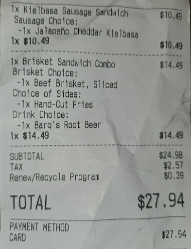 After knowledgeably answering my questions about the brisket, Kendall maintained focused eye contact, was verbally polite and appreciative in the ordering process. This was followed by the immediate creation of my FAV MEAL by a different staff member there that evening (her name was Krysta). The sandwhich was made quickly, but with care. Krysta made sure that the sandwhich was presented aesthetically and accurately- TWO THUMBS UP!!!