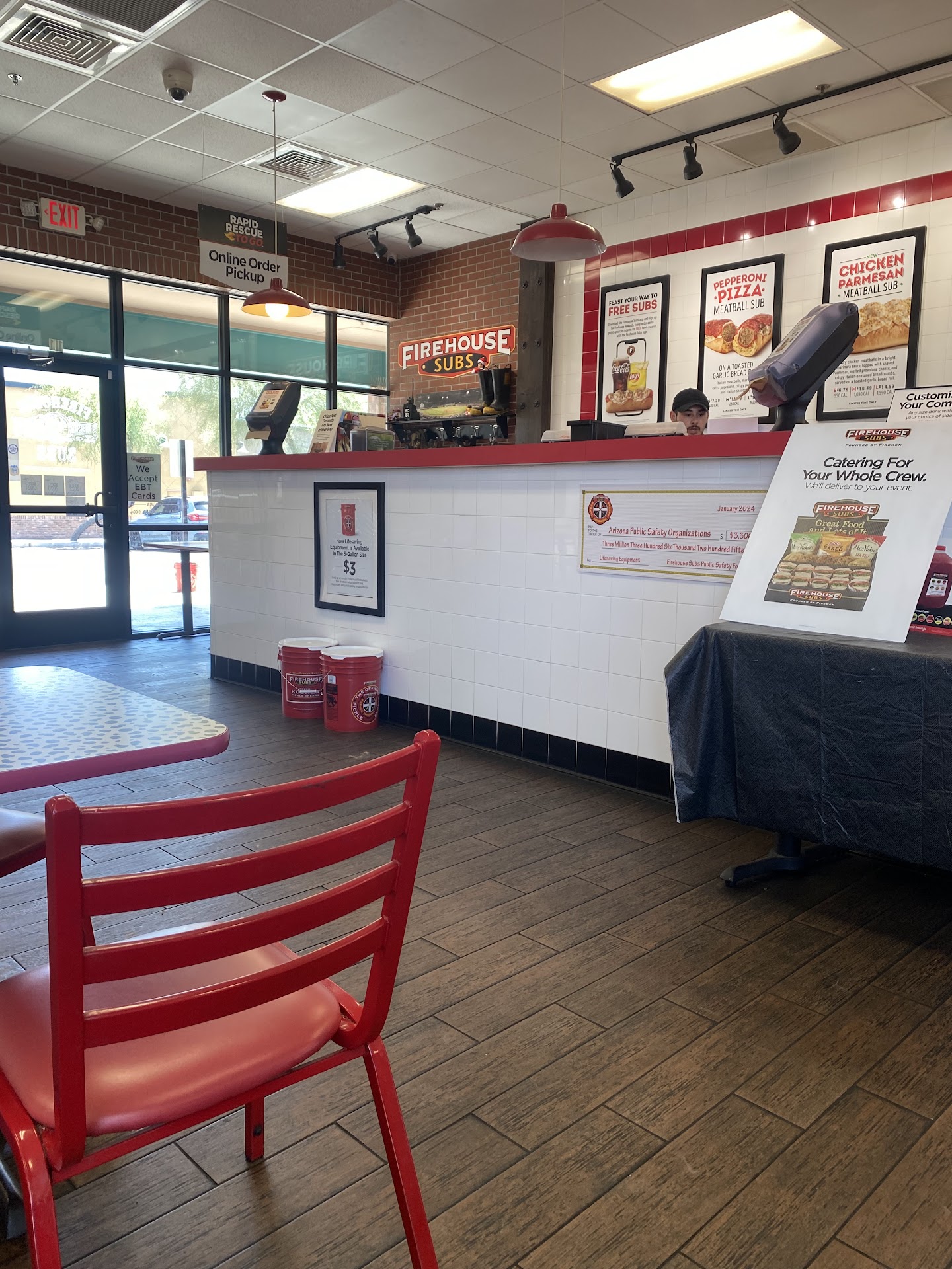 Read moreThe gentleman taking my order was coughing horribly, not covering his mouth and no gloves. Yet he heads you the receipt and the drink cup. This was bad enough. Then I watch him walk over to the area the food is made behind that tall counter and he still puts on NO GLOVES and coughing over the top of the food and starts to make sandwiches and does NOT cover his mouth even. The look on his face shows that he is miserably sick and yet he coughs over the food with no mask or even the decency to cover his mouth. When they called my name I took the sandwich and threw it in the trash. This man, short and balding with facial hair, has no business being in this establishment while he is sick and if he HAD to be there, why isn’t anyone making him wear gloves and a mask and allowing him to cough over the top of everyone’s food? Absolutely horrible thing to see. And so many poor people ordering online and just walk in and get their food without knowing this person is sick and coughing on their food. This was my first AND LAST trip to this Firehouse Subs on Estrella and Roosevelt...