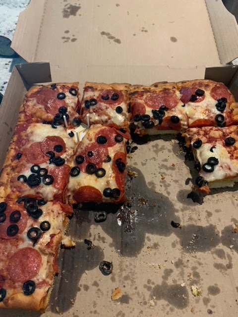 Read moreI went online as a first time customer Sunday May 2, 2021 at 3:45PM and placed a to go order the Garden Square Pizza ($23.95) and added extra pepperoni ($1.95) and extra olives ($1.95). The pizza should come standard with: Pepperoni, sausage, onion, mushroom, green pepper, and extra cheese. I also ordered Appetizer of onion rings ($5.50) and side of small Caesar salad ($4.50). I tipped 20% as I placed the online order which is my standard tip. The total bill was over %50 including tip.