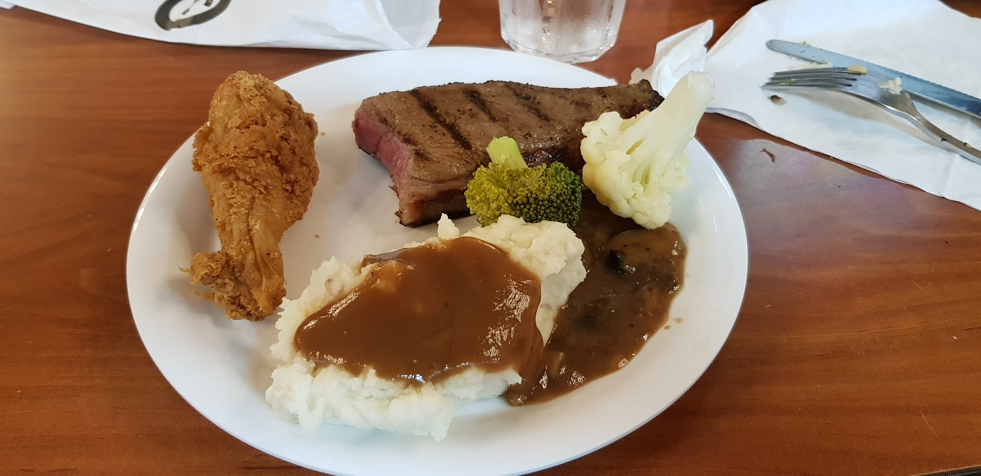 This was the worst food I had ever had at a Golden Corral. We were late for supper, so we chose GC as food would be ready to eat. About 7:50 pm when we arrived, open until 9:30. I have 2 "go-to's" at GC - fish & chips and pot roast with mashed potatoes and gravy. I got one piece of fish, that was all that was there, it never got refilled. The chips must have been there for hours, barely warm and limp...awful. The pot roast was uneatable. See the photo, what was there were large chunks of hard dried up roast. A plastic spoon to try to dig into it wasn't happening. I tried but it was too hard to try to get any chunk off with it. Thought I would have some BBQ ribs, they were so overcooked and dry that I ate one and threw others away. When we arrived, I noticed that the carved ham was down to crumbs, literally. Went back to get some and it turned into sausages. Took a piece of sausage, barely luke warm, yuk. Oh, started with a chicken noodle soup, it was barely warm and watered down. Gave up and went for dessert. One piece of brownie left, all dried up. Got 1 nice piece of cake and some pudding, these were the highlights of the meal. Oh, and it was a Friday so we paid extra. I asked what they added to the buffet for the extra charge and was told they just charge extra on the weekend. The water glasses at the table got refilled but the paid soft drinks did not. We drove 1/2 hour to get here, we were really hoping to find a new GC we liked as our local one closed due to Covid. The only one I have found that was good is about an hour drive ā¹ļø. Might have to just give up on my "favorite"...