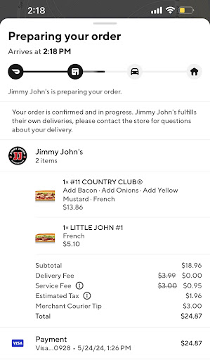 Read moreI don’t know what is going with this particular spot, but they have been falling off for the last 2 years and it does not seem hopeful that they will recover. I waited 10 minutes for my order to even be taken and there was no one in front of me. Then I waited 30+ minutes for 3 sandwiches and two people who came in after me, got their food before me - they did not order single sandwiches, the one guy had two bags worth of stuff. This makes no sense to me. When they do call me for my sandwiches, they are wrapped like a toddler did it, and the side sauce is not in the bag. I explicitly asked the worker if there was sauce on the sandwich and he lied to my face and said there wasn’t. Gave me a side of oil and vinegar and mayo packs. They don’t deliver outside of a certain area for the very reason of sogginess. I get home and the sandwich has oil and vinegar and mayo on it. It is also entirely and completely missing the meat and cheese. Called back for a refund on the sandwich? Nope. She can’t process anything like that it has to be the owner. She takes my number and says “Doug” will call tomorrow to fix it. Never heard from Doug. I guess I paid to learn a lesson. Will not be going back to this location. Hopefully the franchise will realize what is going on here and step in, they are not holding up to even the basic standards of Jimmy...