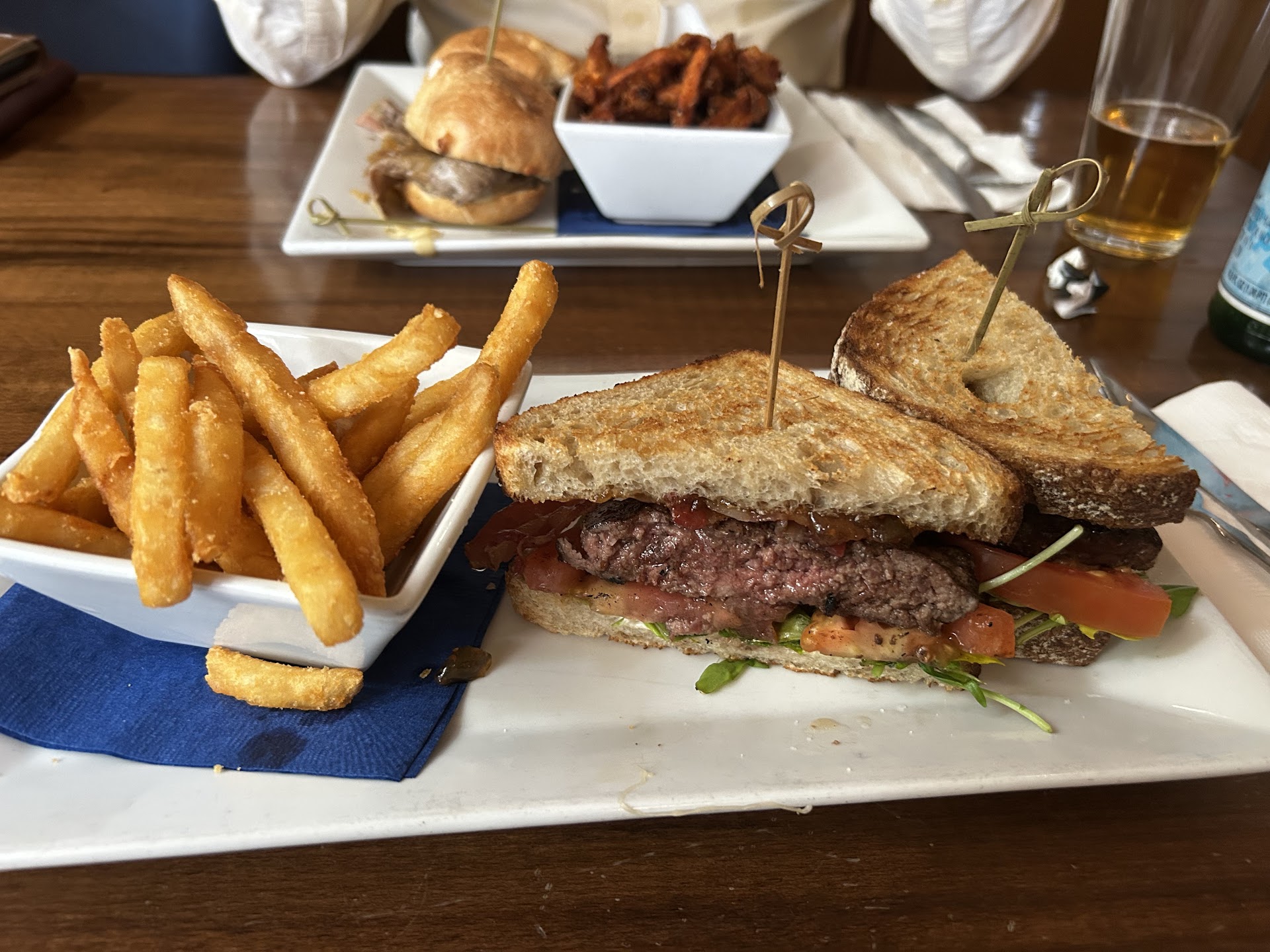 Read moreI enjoy coming here on occasion... especially being able to sit outside. Overall, the service has been relatively quick - and the servers friendly. But, I do wish the menu was a bit more expansive, more creative, and a little less expensive. I used to enjoy their bruschetta, but that was taken off. Ordered a Bistro Burger, which had tasty ingredients... but cheap, cold bread that was neither sourdough nor grilled (and of course everything fell apart). Why wouldn't you serve this on a challah bun or something similar with the amount of ingredients on it? The dessert I ordered was a chocolate molten lava cake... except it was just a chocolate cake that was probably taken out of the fridge. No molten chocolate at all... so, no melted chocolate seeping out when I put my fork through it. (This is the 2nd time I've ordered this, because also wasn't molten the first time. Thought it was a fluke... nope). This place has the ability to elevate their menu - I hope they eventually choose to, because it is such a great spot and you want to support community businesses. Just needs a...