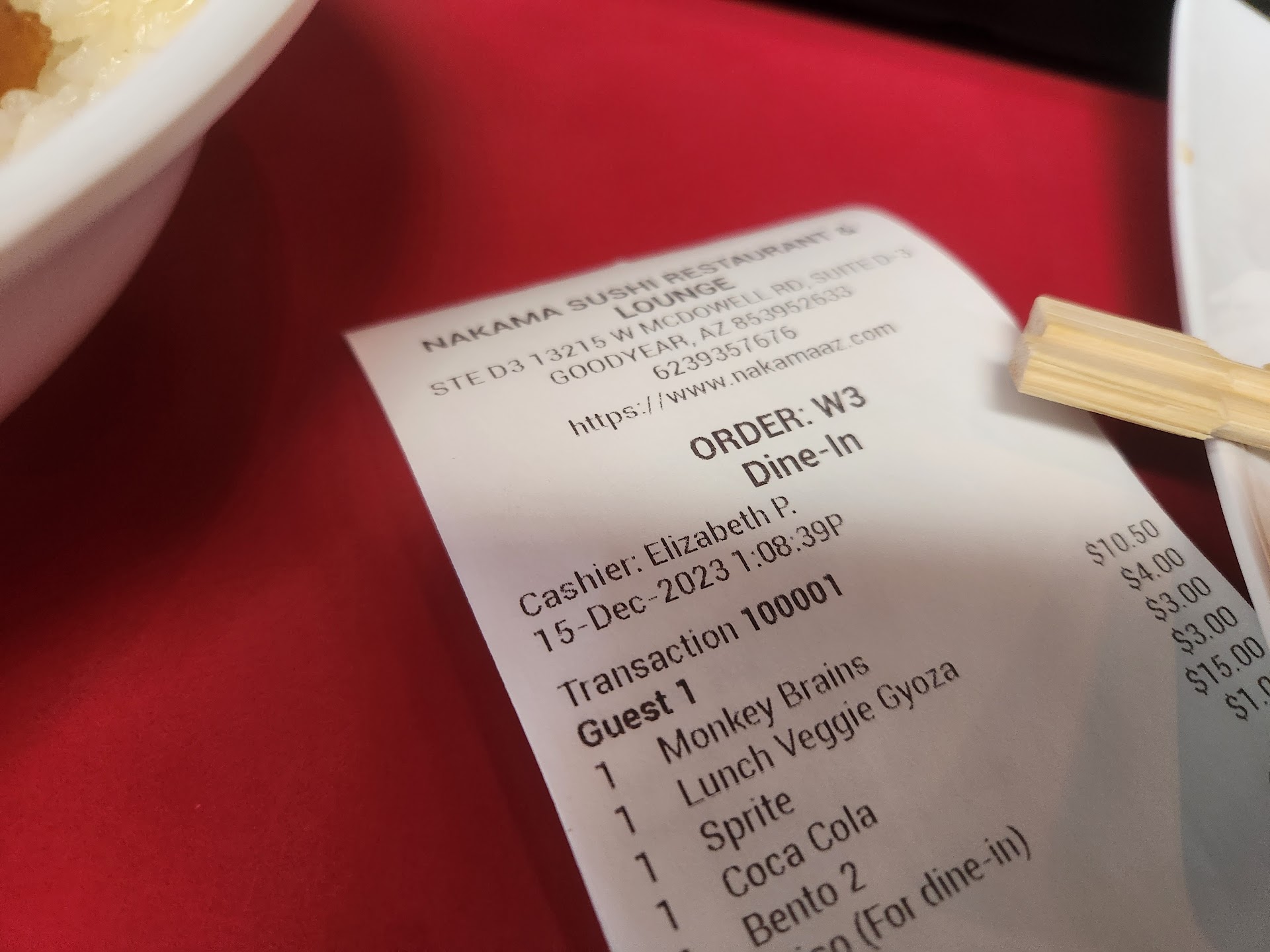 Read moreI am a server myself, so I try to be understanding. However, I draw the line at COCKROACHES and bad service. Elizabeth was our server, and she really didn't bother with being nice. Waved us to sit wherever ( the place was EMPTY ). Elizabeth was very much on her time and not our time. She walked away immediately after I said my first starter, I had to call out the rest of my order as she was at the ziosk already. She looked annoyed. After our appetizers, I'm looking around, and I see a HUGE COCKROACH on the white wall near one of the tables. I tell Elizabeth about the cockroach. She goes over and looks at me like I'm making things up until she spots it and slams her foot down onto it. She looks at me and says, "Oh, I see it now." She proceeds to sweep it up and walk into the back without a backward glance at us. Needless to say, I've lost my appetite. She brings us our entrees, not asking us any question, no offer of apologies for the cockroach display. I couldn't eat my basic orange chicken, and my husband hardly touched his bento box. Meanwhile, we can hear laughing in the kitchen from our server. We are still the only ones in the restaurant. She finally returns to ask us if we wanted boxes. I told her I couldn't eat my orange chicken and we wouldn't be taking anything home. She charges me full price for EVERYTHING. I asked her to take the orange chicken off since I didn't eat it. She gave me a look that suggested this was all completely my fault.