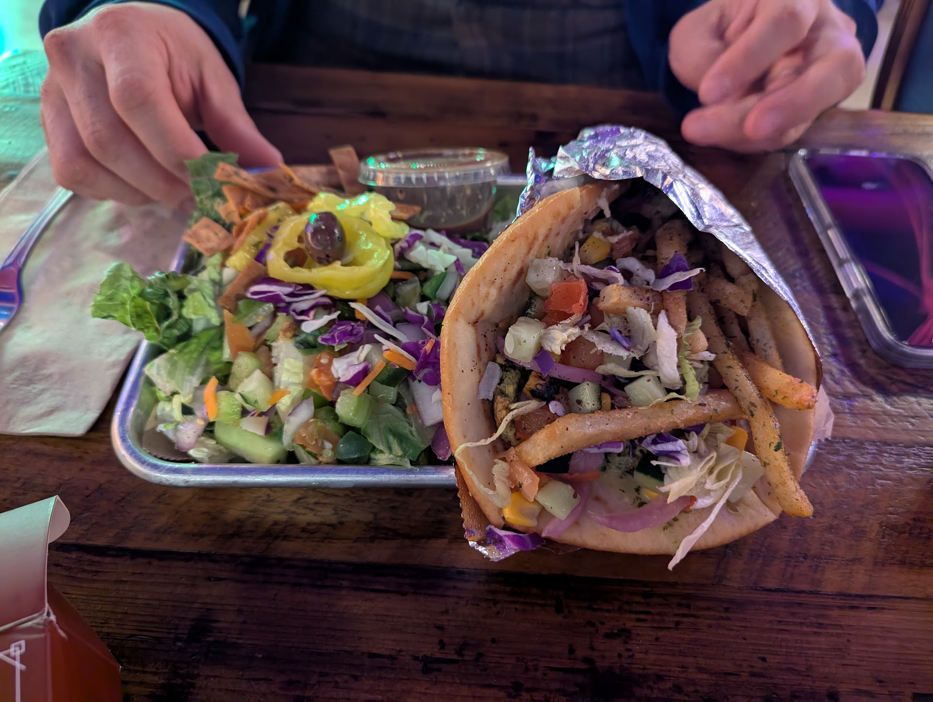 Had the Spitz Gyro with lamb and beef, with the pita and hummus for side, we shared some wings, and I can honestly say it was the best Ive had! The flavor of the Gyro, texture of the pita, seasoning on the fries, EVERYTHING was top tier.