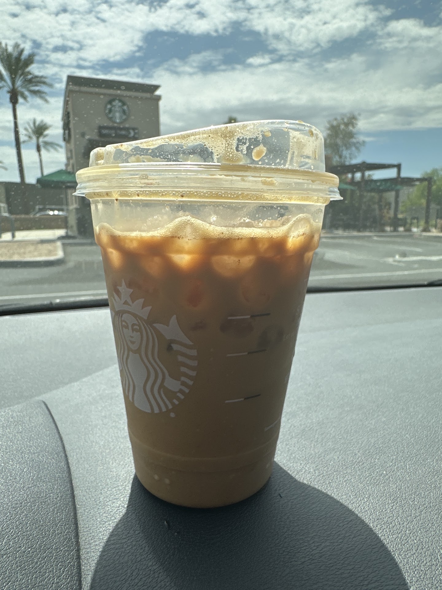 First issue was both cups were not evenly filled even though they were the same exact drinks. I understand it’s impossible to get the measurements exactly the same but the difference of each was embarrassingly drastic. I was pretty shocked but didn’t make it a big deal. I simply asked the gal who gave me the drinks if she could PLEASE fill up the cups with creme. The gal in the drive thru was pleasant and professional. If I had to make an educated guess she seemed to be fairly new because she asked another girl what she should do in this situation. The other girl said, “this is very inconvenient make sure to let them know next time they’ll be charged extra since they did get light ice but want the cups filled up.” Mind you it’s a drive thru and I literally heard everything. Last time I checked when purchasing any drink you’d expect it to be filled up!